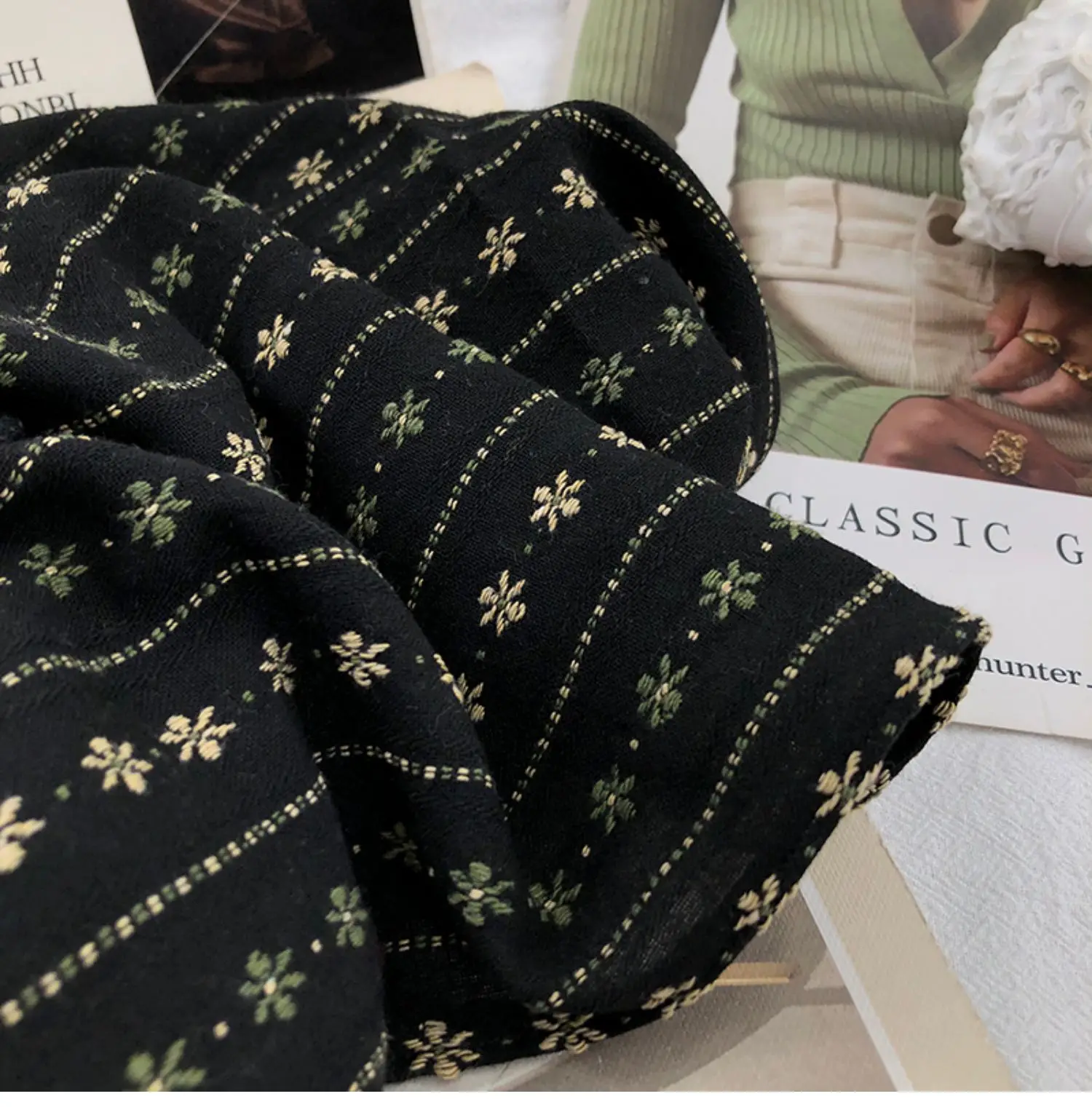 Black and gray cotton plaidBlack jacquard cottonBrown jacquard cottonCotton brown plaidDark green cotton plaidVintage beige jacquard cotton