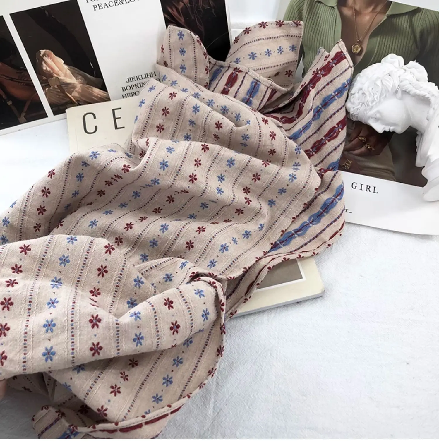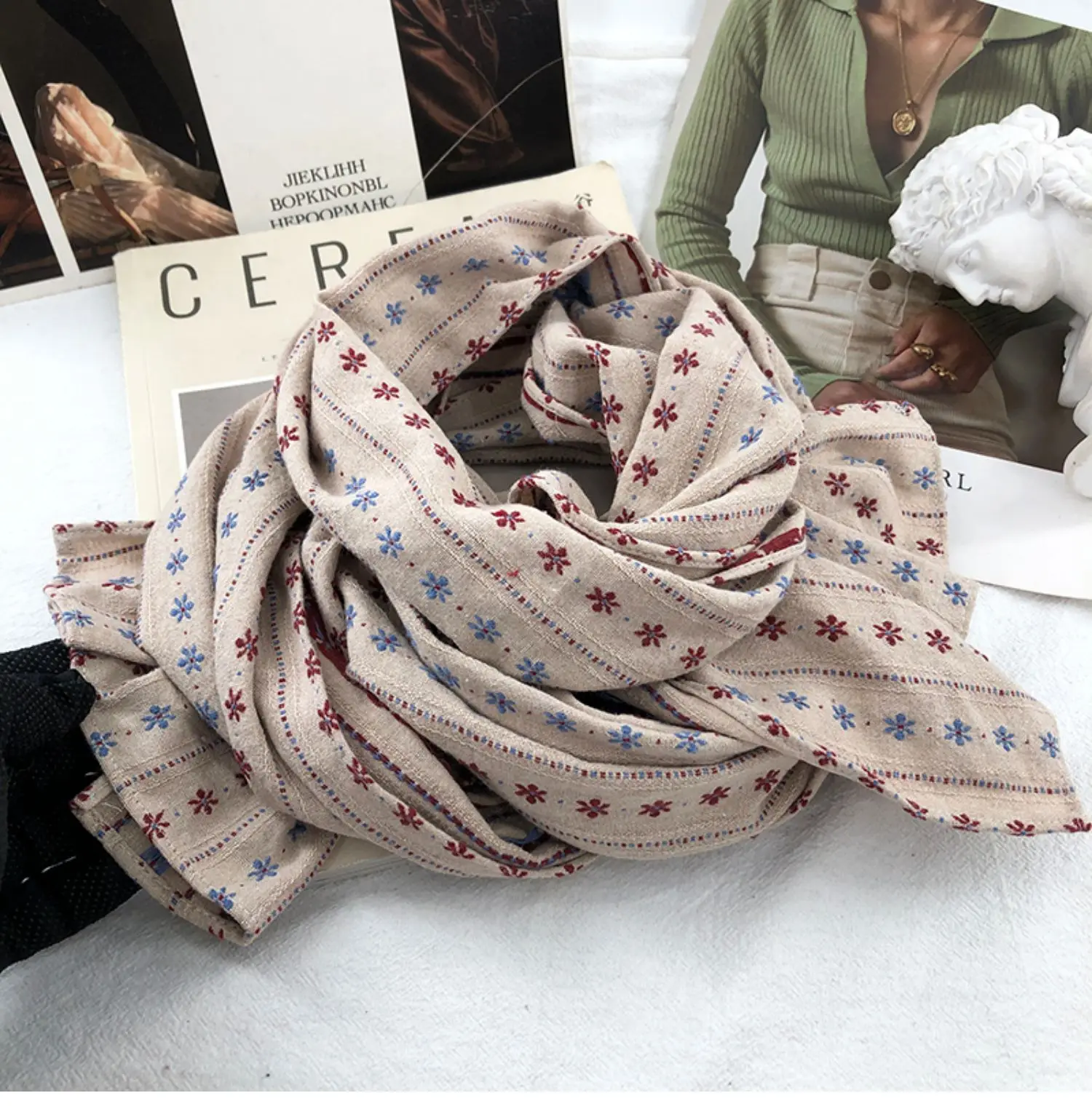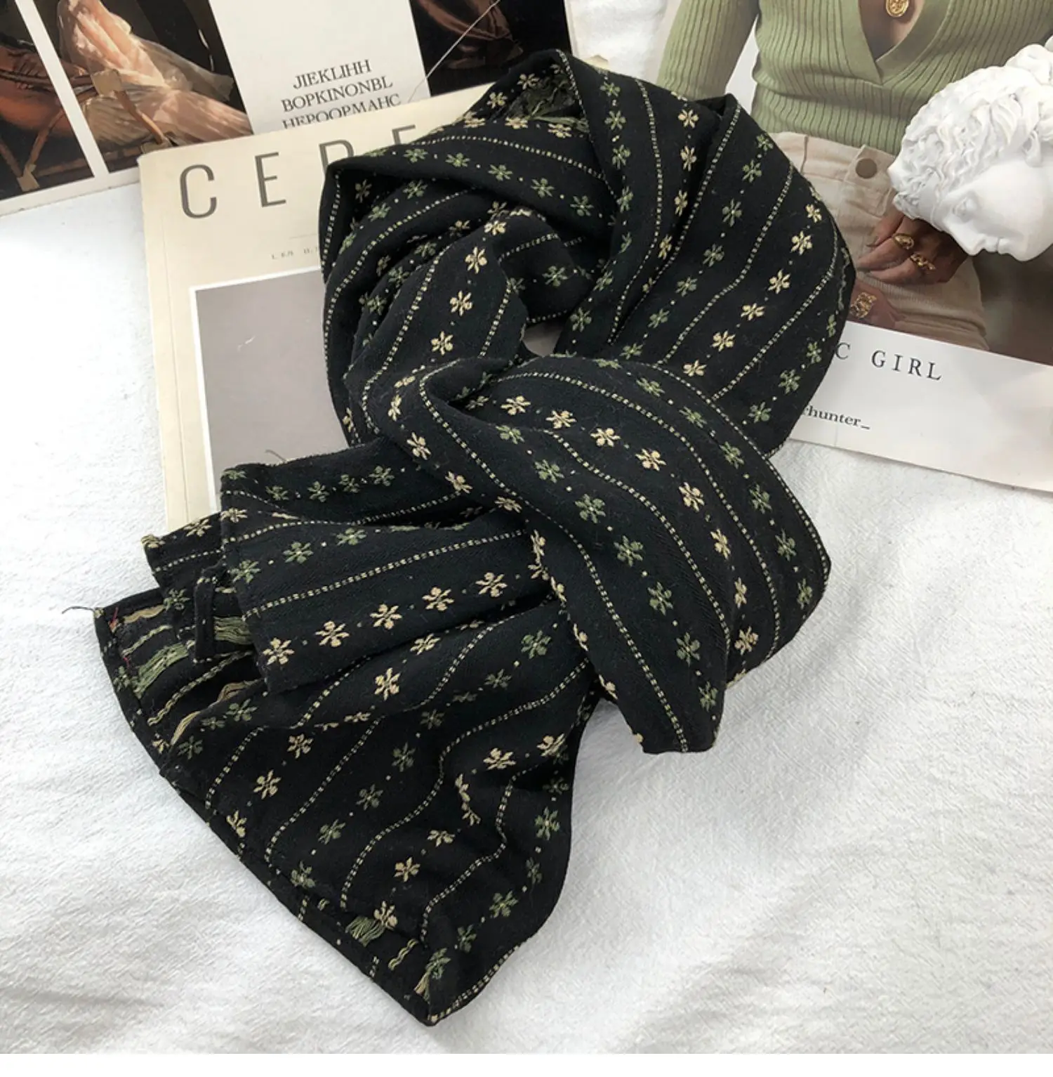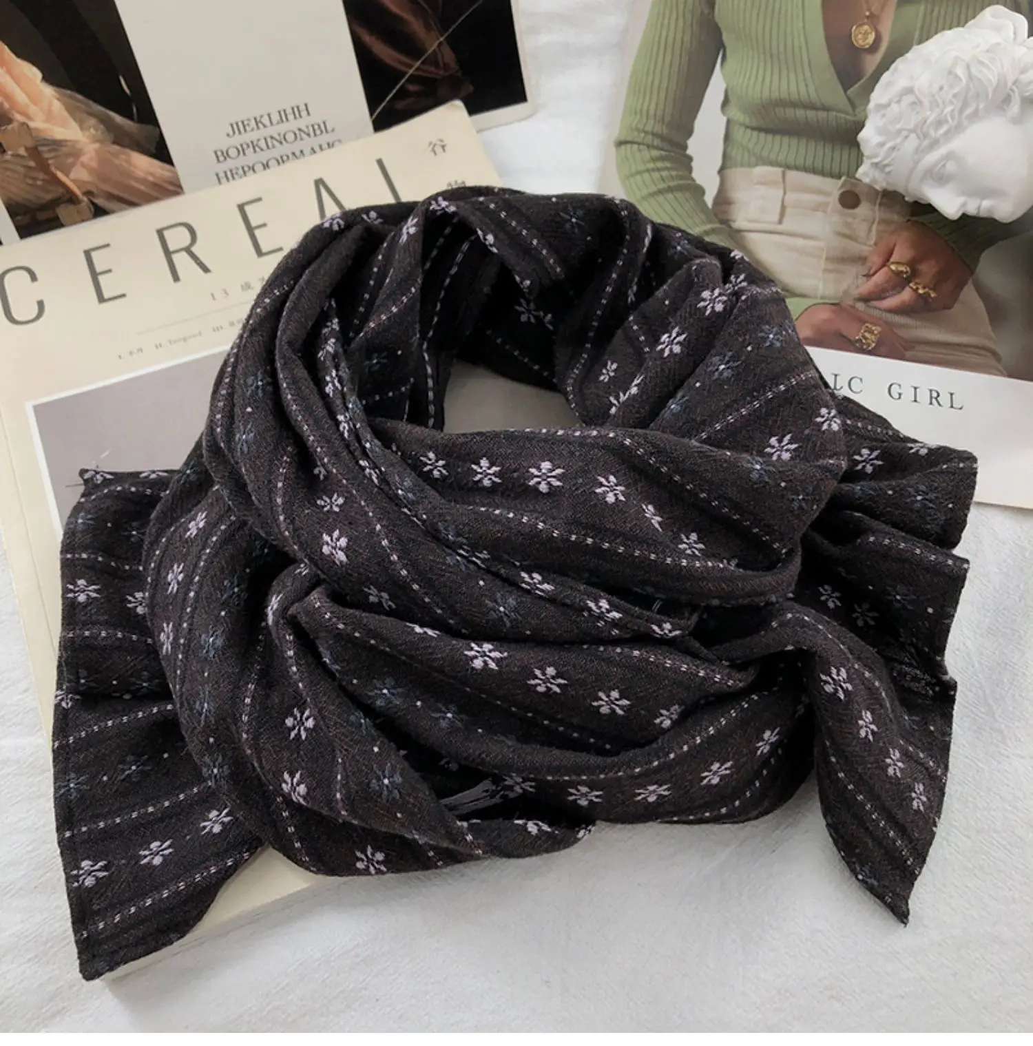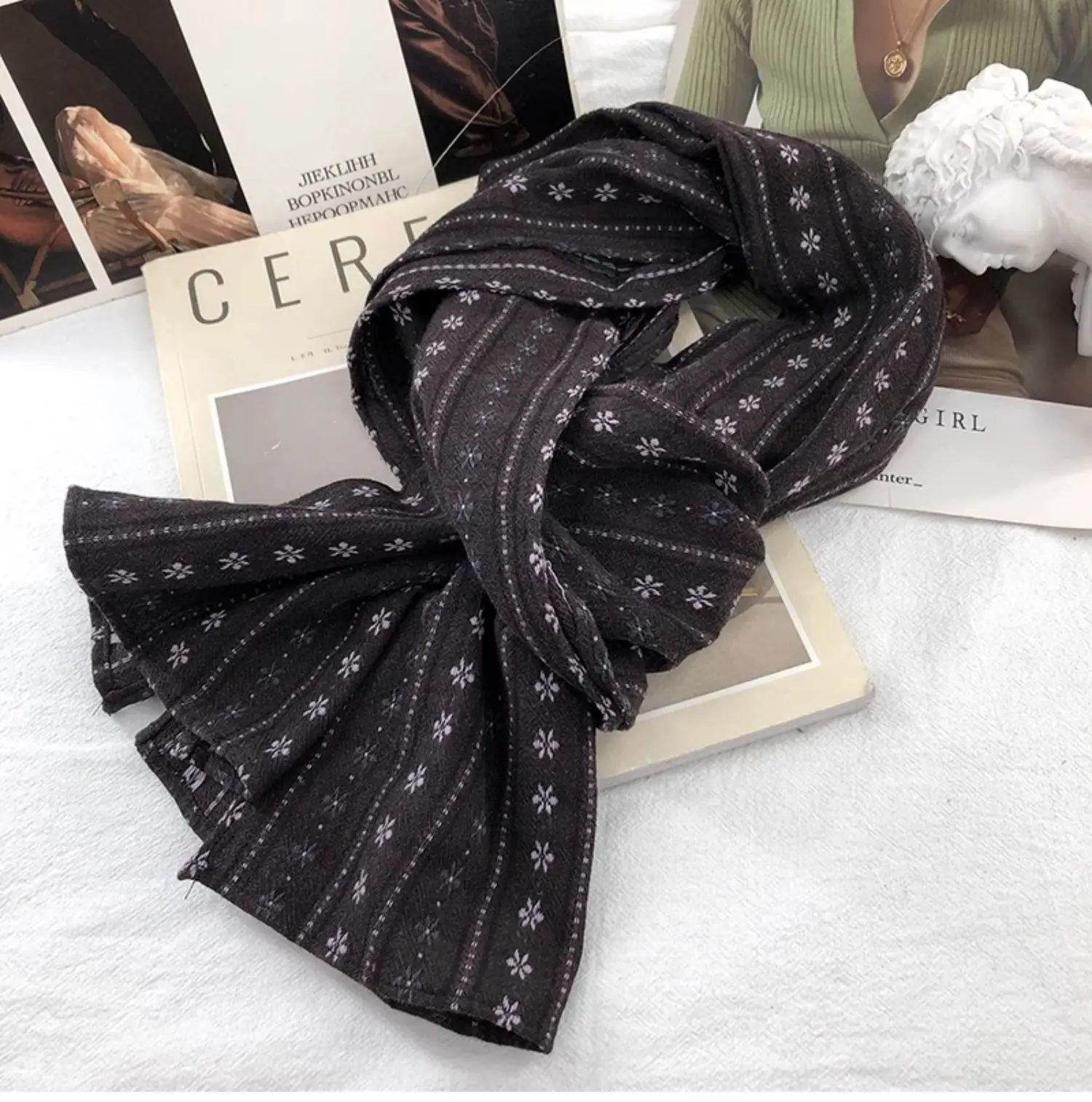 The long rectangle shape of the scarf allows for multiple styling options, from a classic wrap to a trendy knot.
