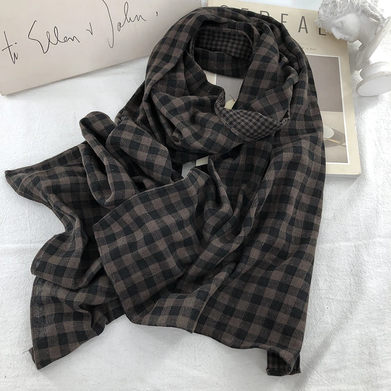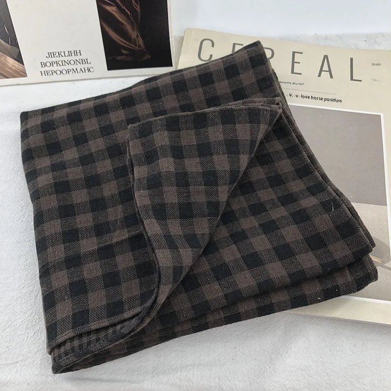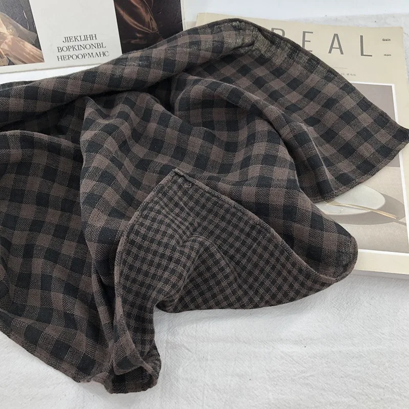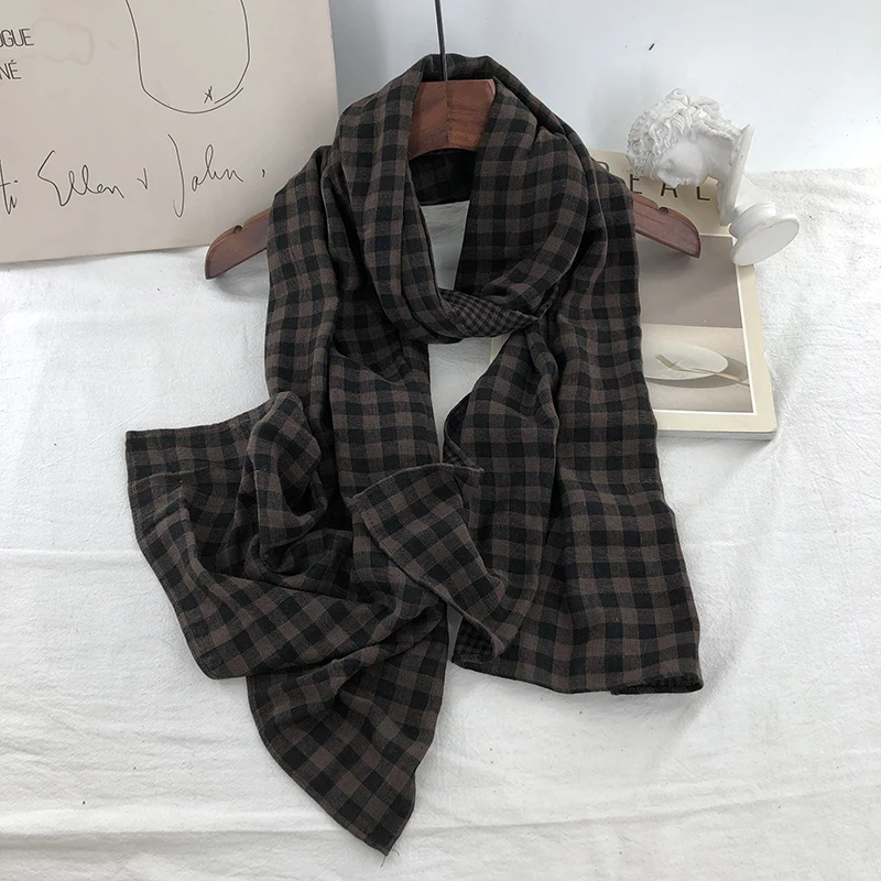 Double-Sided Plaid Pure Cotton Scarf Women’s Student Ne Protection Scarf Autumn Winter Spring Brown