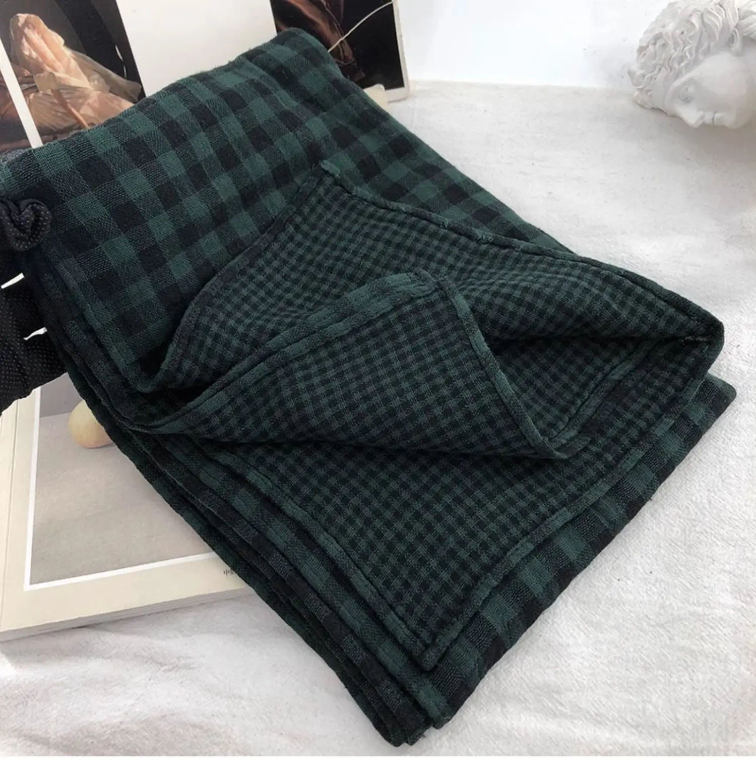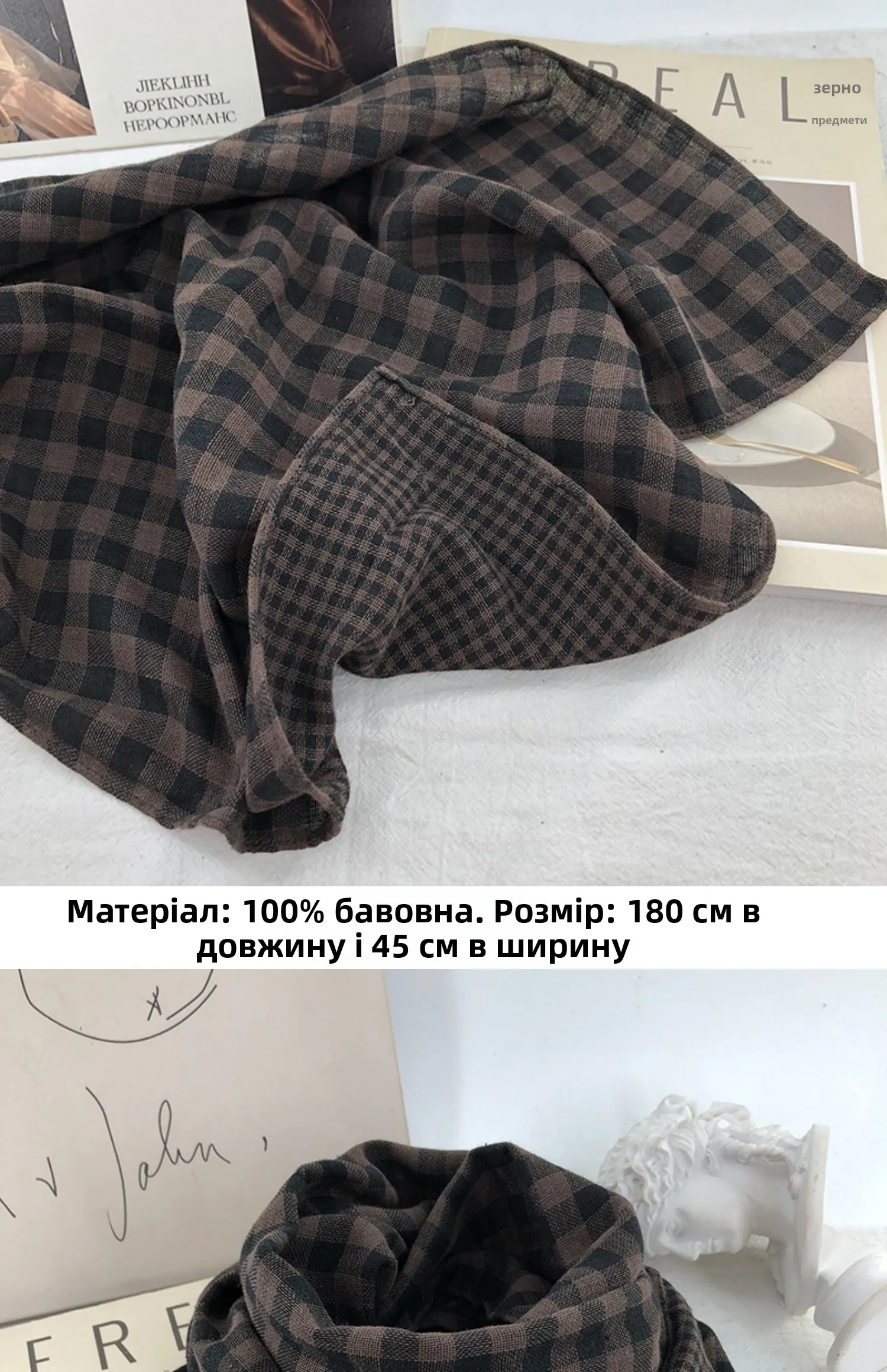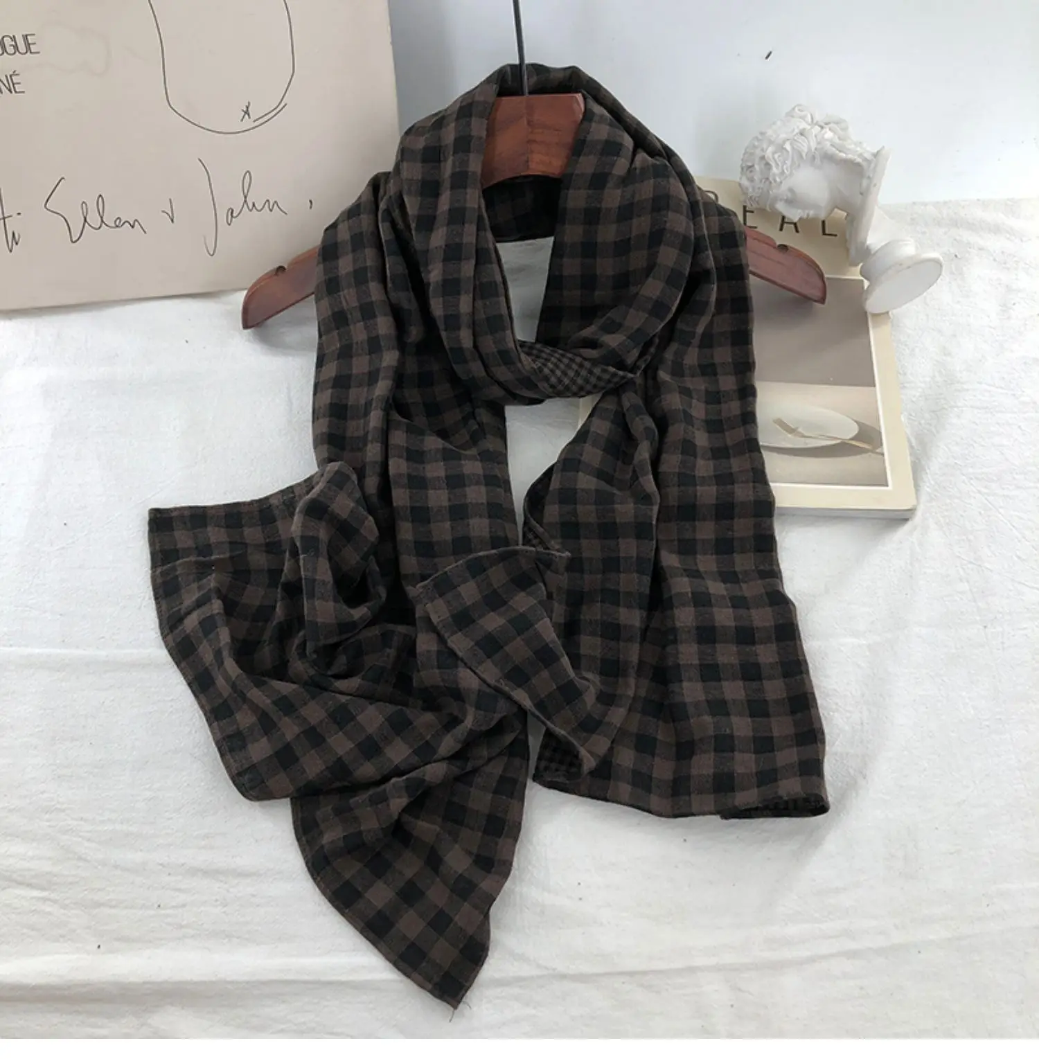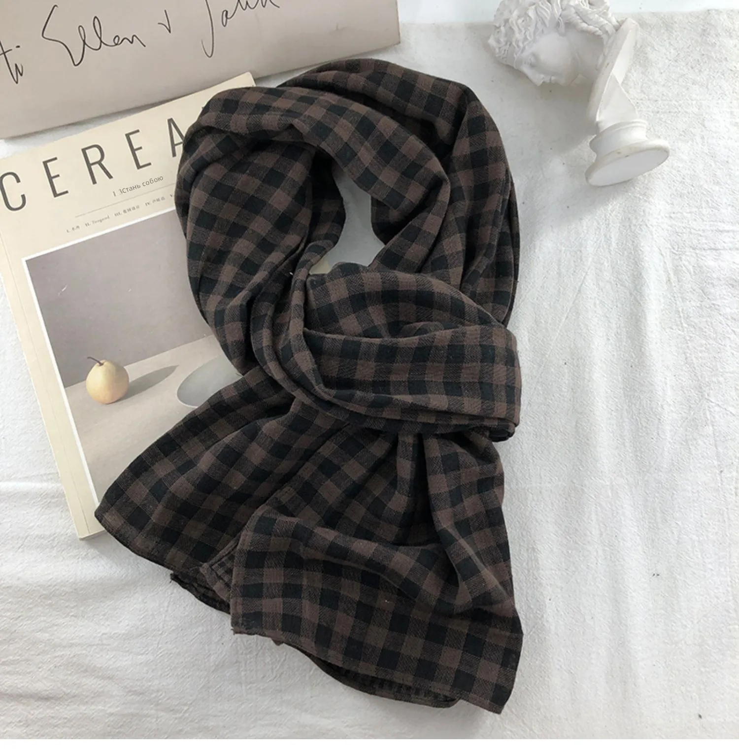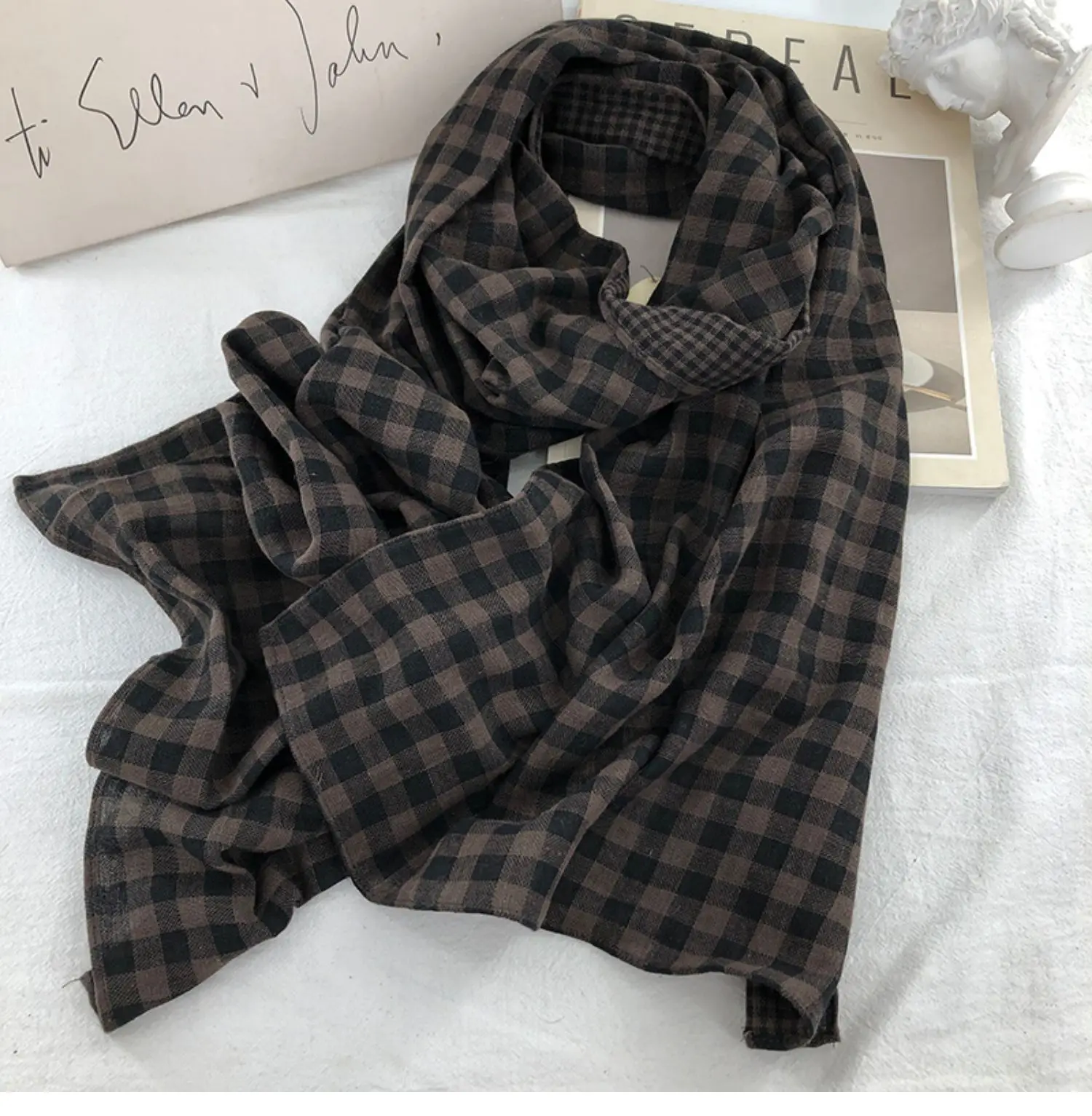 Be the first to review “Double-Sided Plaid Pure Cotton Scarf Women’s Student Ne Protection Scarf Autumn Winter Spring Brown”