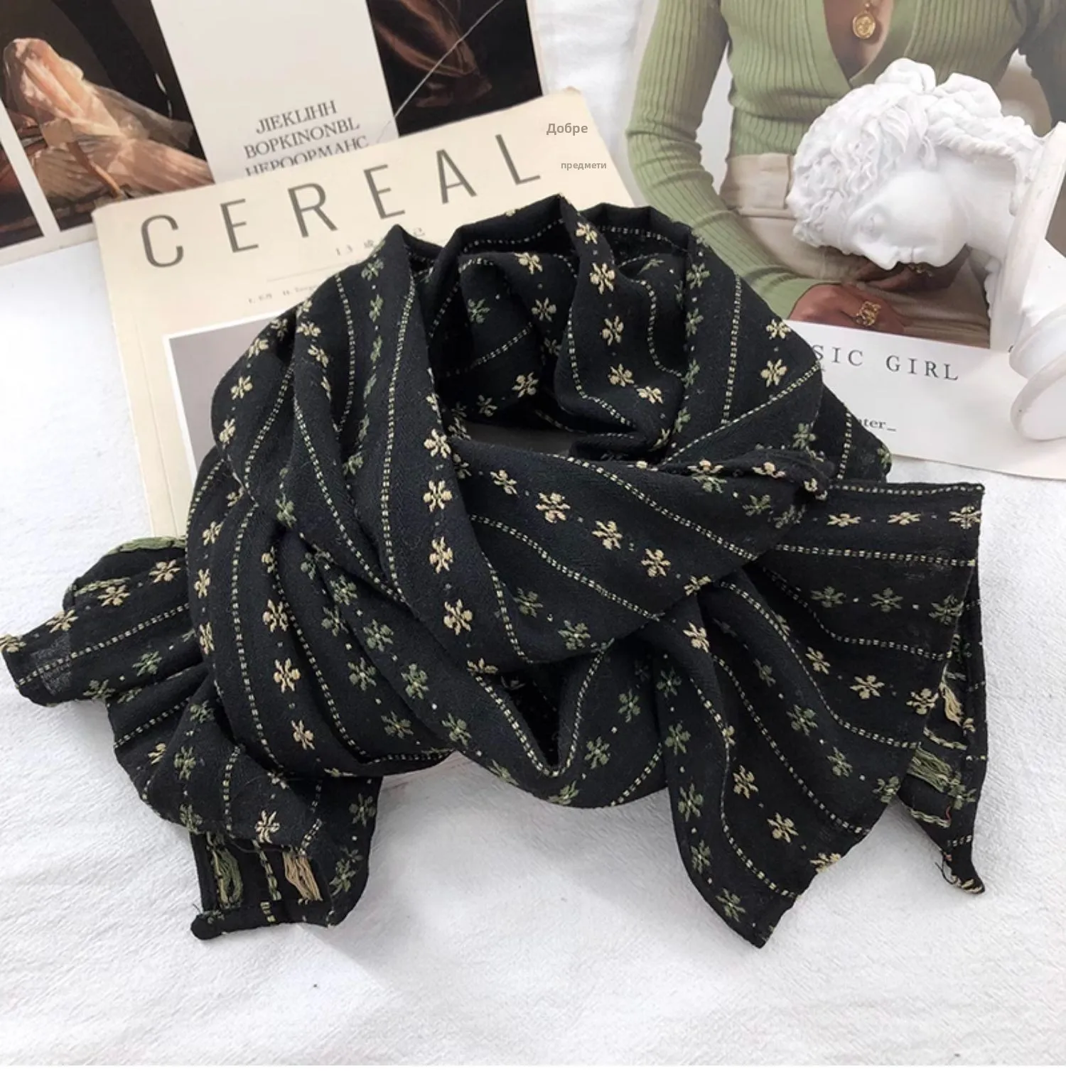 With its warm cotton fabric, this scarf is an essential accessory for keeping you cozy during the colder months.