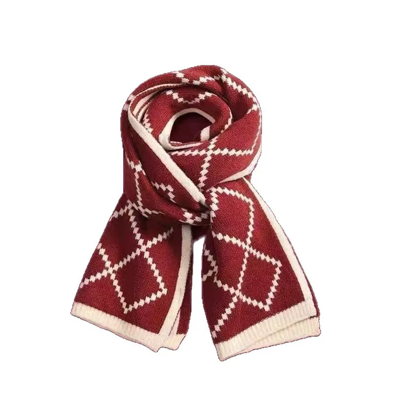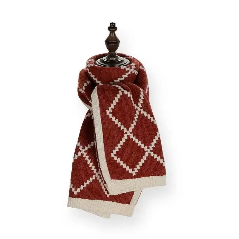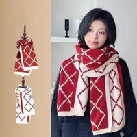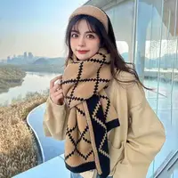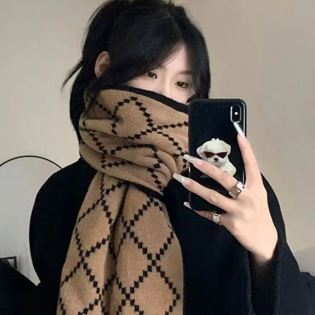 Winter Korean style plaid versatile warm double-sided wearable scarf woolen knitted scarf.