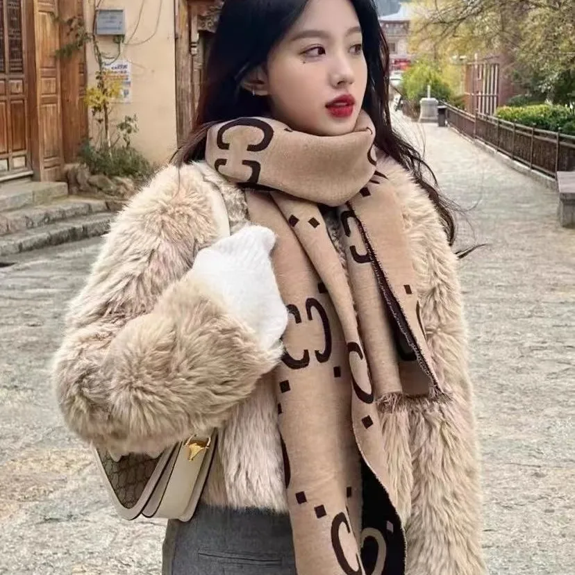 Double-Sided Woolen Scarf for Women Christmas Gift Shoulder Wrap Versatile Warm Neck Warmer Fashionable