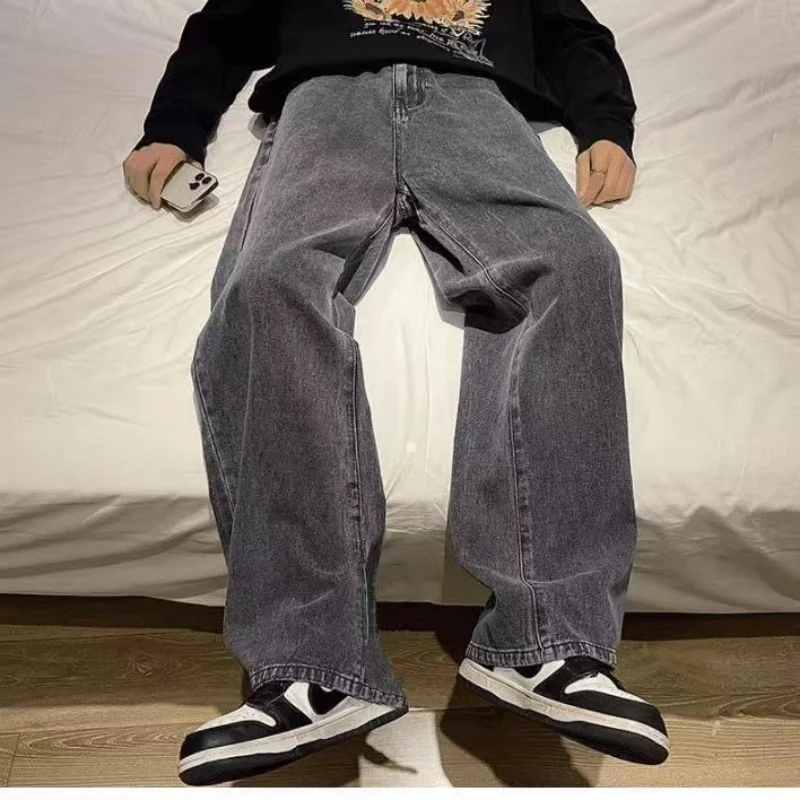Dragging Streetwear Loose Jeans Men Korean Style Fashion Loose Straight Wide Leg Pant Men's Brand Clothing Black Light Blue Grey