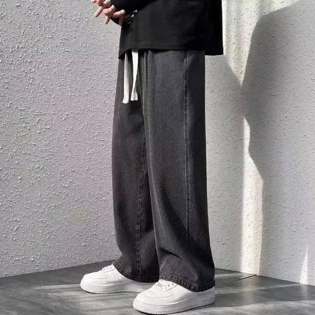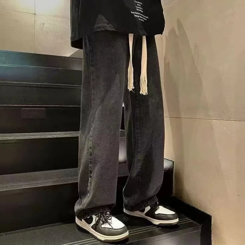 Dragging Streetwear Loose Jeans Men Korean Style Fashion Loose Straight Wide Leg Pant Men’s Brand