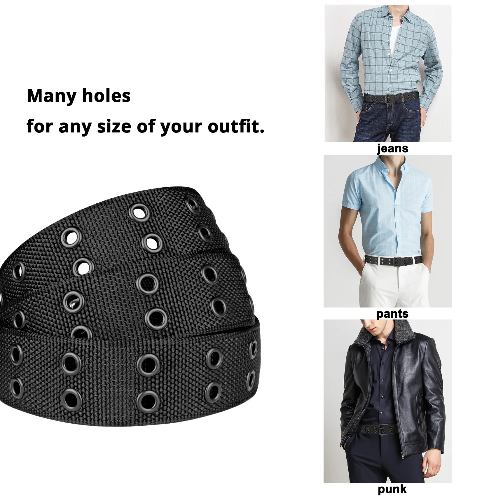 The belt is long and is size adjustable by the many silver metal rivets for each prong.