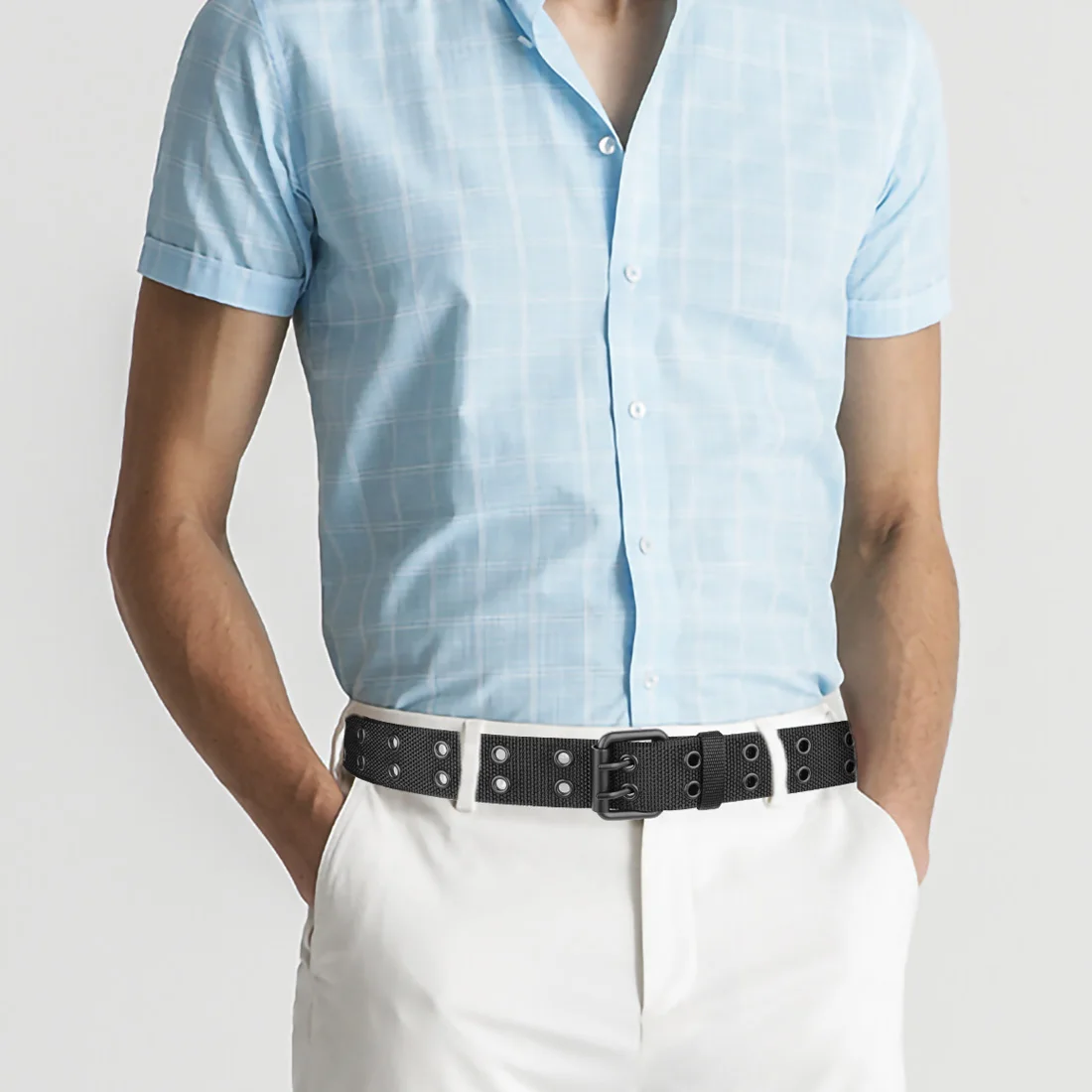 Complete the rockstar costume with a guitar, long hair wig, black bikers clothing, and this belt.