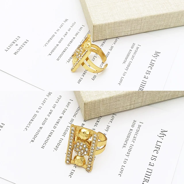 Dubai 18K Gold Plated Jewellery For Women Rhinestone Luxury Design Rectangle Shape Necklace Bracelet Earring Ring Jewelry Set