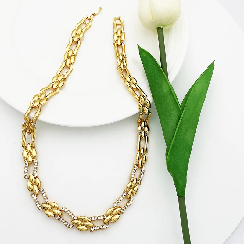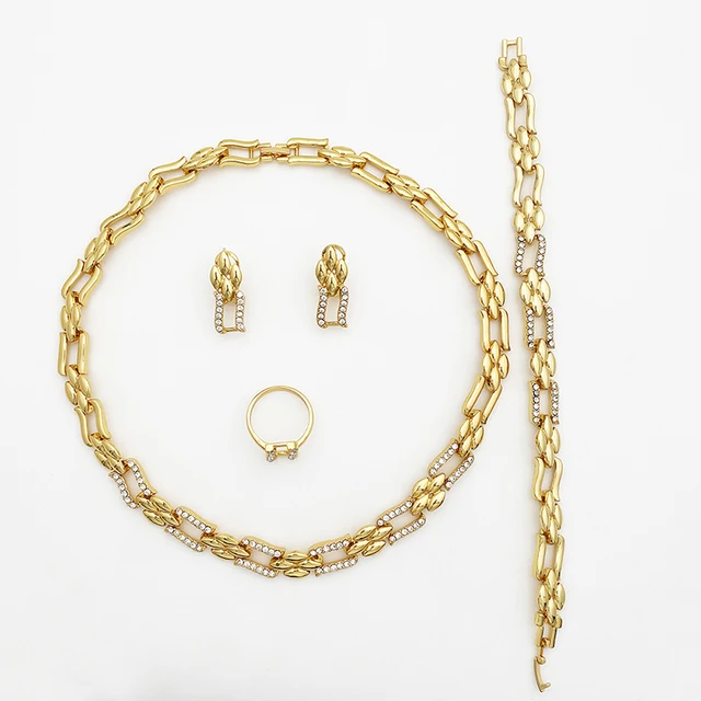 Dubai Gold Color Jewelry Set Cuban Necklace Earrings For Women Bride Wedding Jewelry Banquet Party Gift