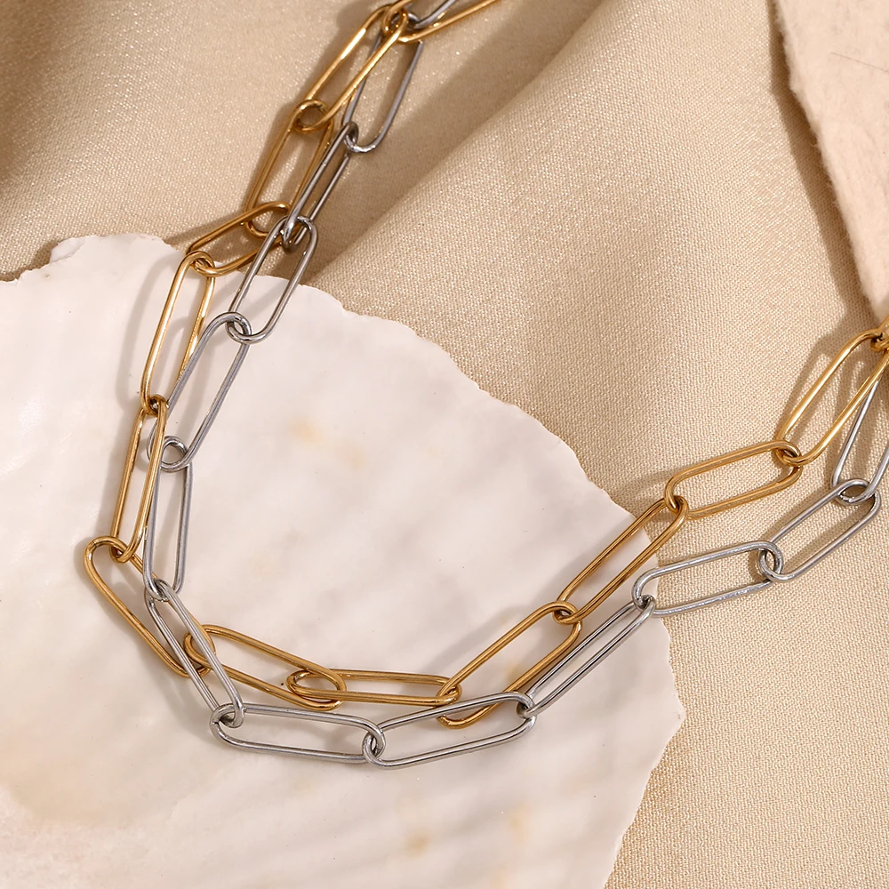 E.B.belle 6mm Mimalist Paper Clip Chain Necklace Hypoallergenic 316L Stainless Steel Decoration For Jewelry