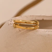 E.B.belle Classic Design Multi-Layer Circles gold plated rings Saprking AAA Zircon Stainless steel jewelry woman Decoration