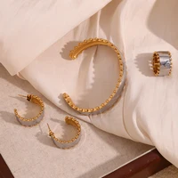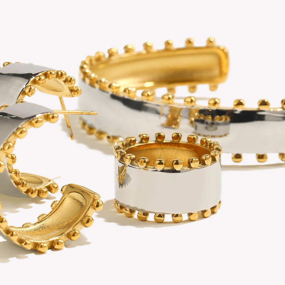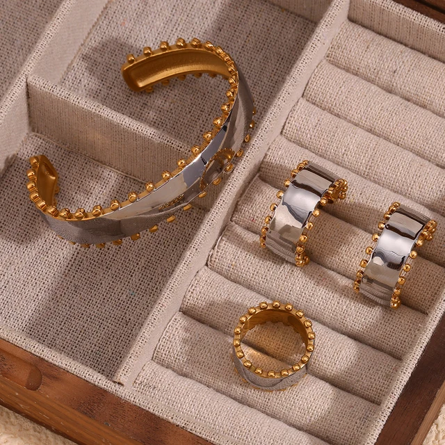 E.B.belle Double Color Beads Edge Glossy Bracelet Earring Ring Women Jewelry Set Stainless Steel 18k Gold Plated Waterproof