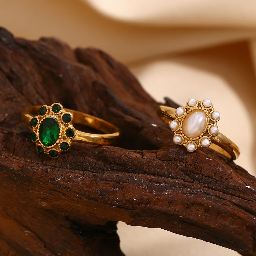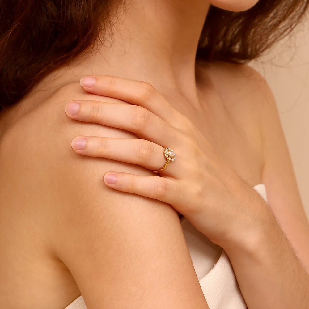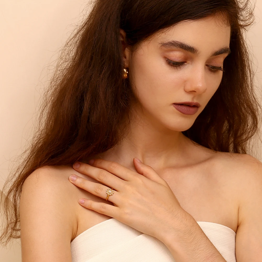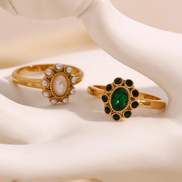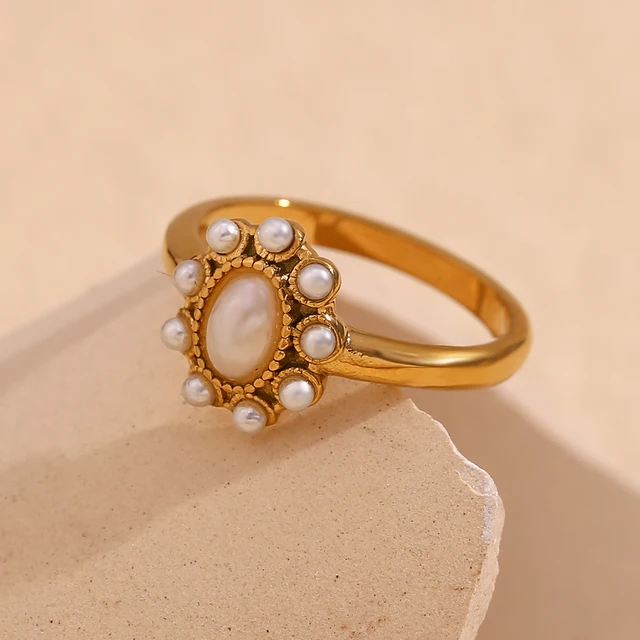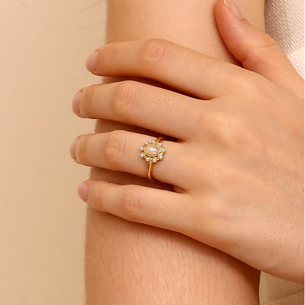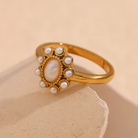 E.B.belle Stainless Steel Tarnish Free Jewelry Natural Shell Ring Thin Small Size White Rings For Woman Ladies Elegant Ring