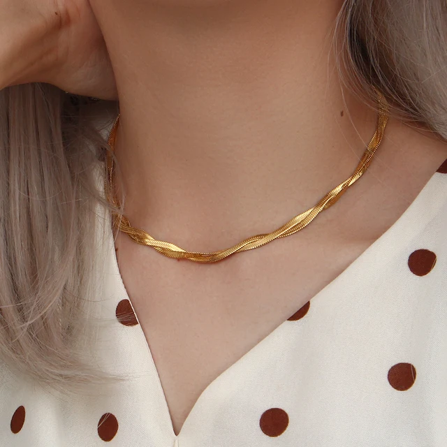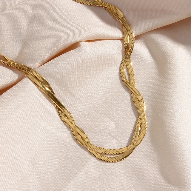 E.B.belle Gold Plated Waterproof Braided Herringbone Chain Necklace Bracelets Set Wholesale Stainless Steel Jewelry For Women