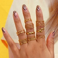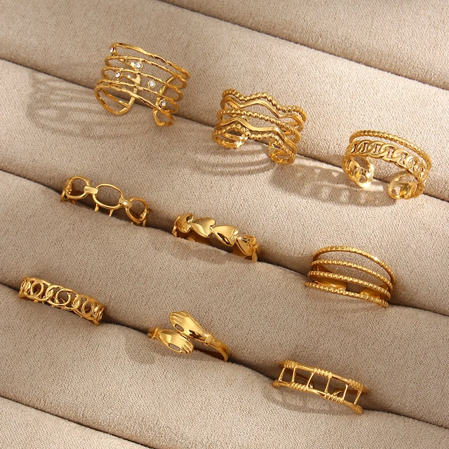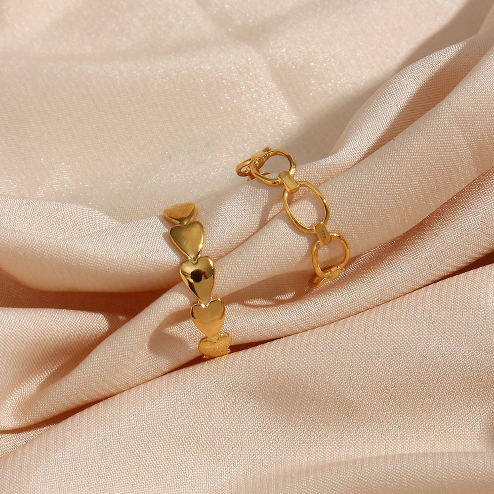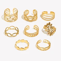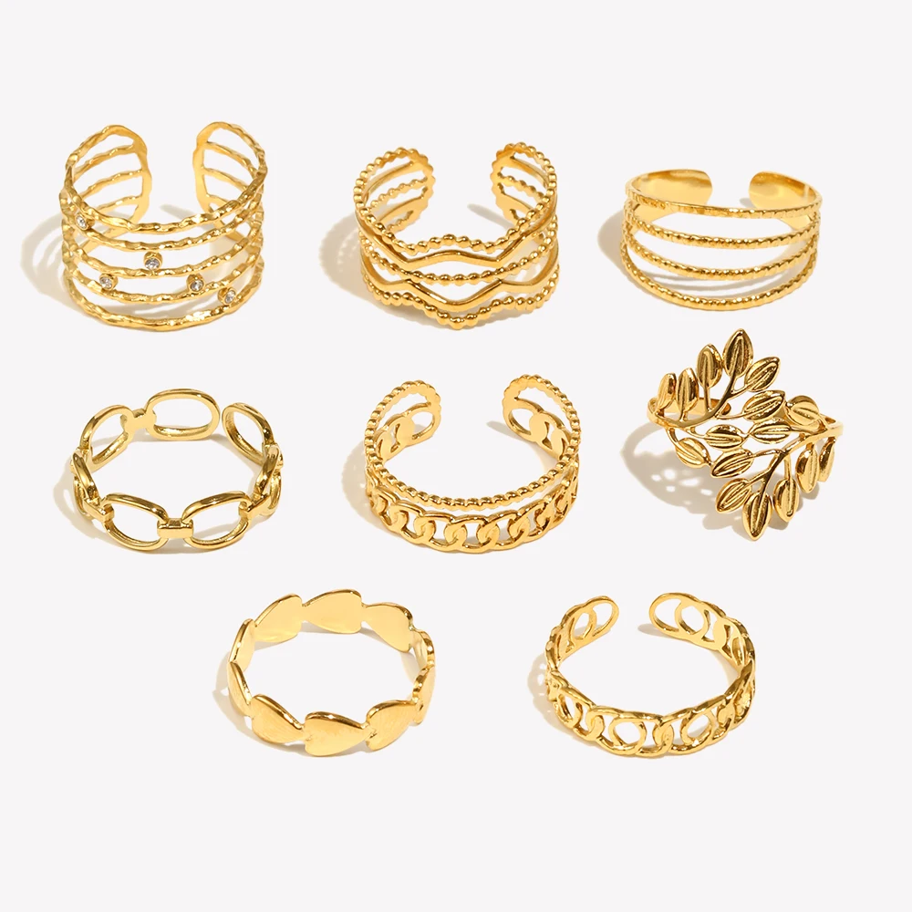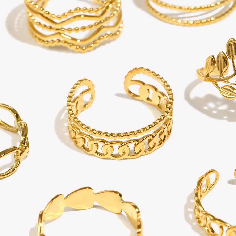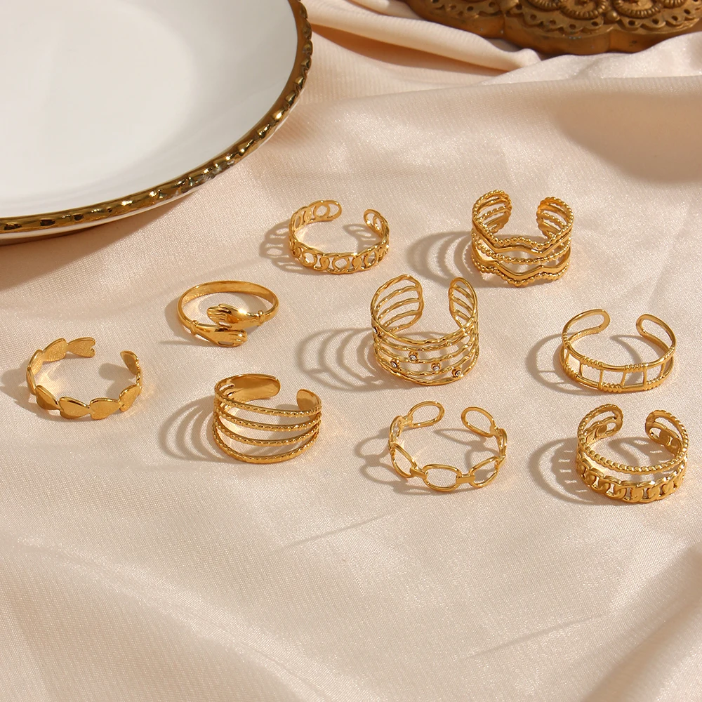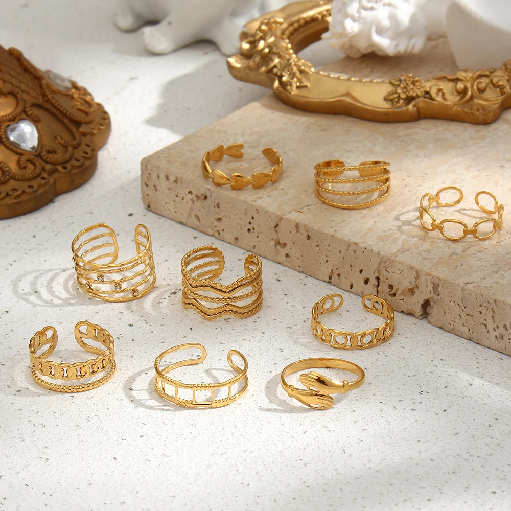 E.B.belle Hollow Chain Wave Heart Irregular Geometric Tarnish Free Stainless Steel 18K Gold Plated Adjustable Rings For Women
