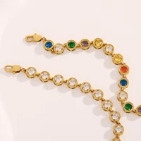 E.B.belle Stainless Steel Jewelry For Female Small Round Green Pink Clear Pearl Charm Necklace Ladies Dainty Jewelry