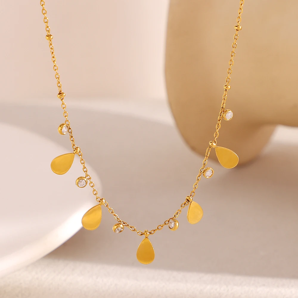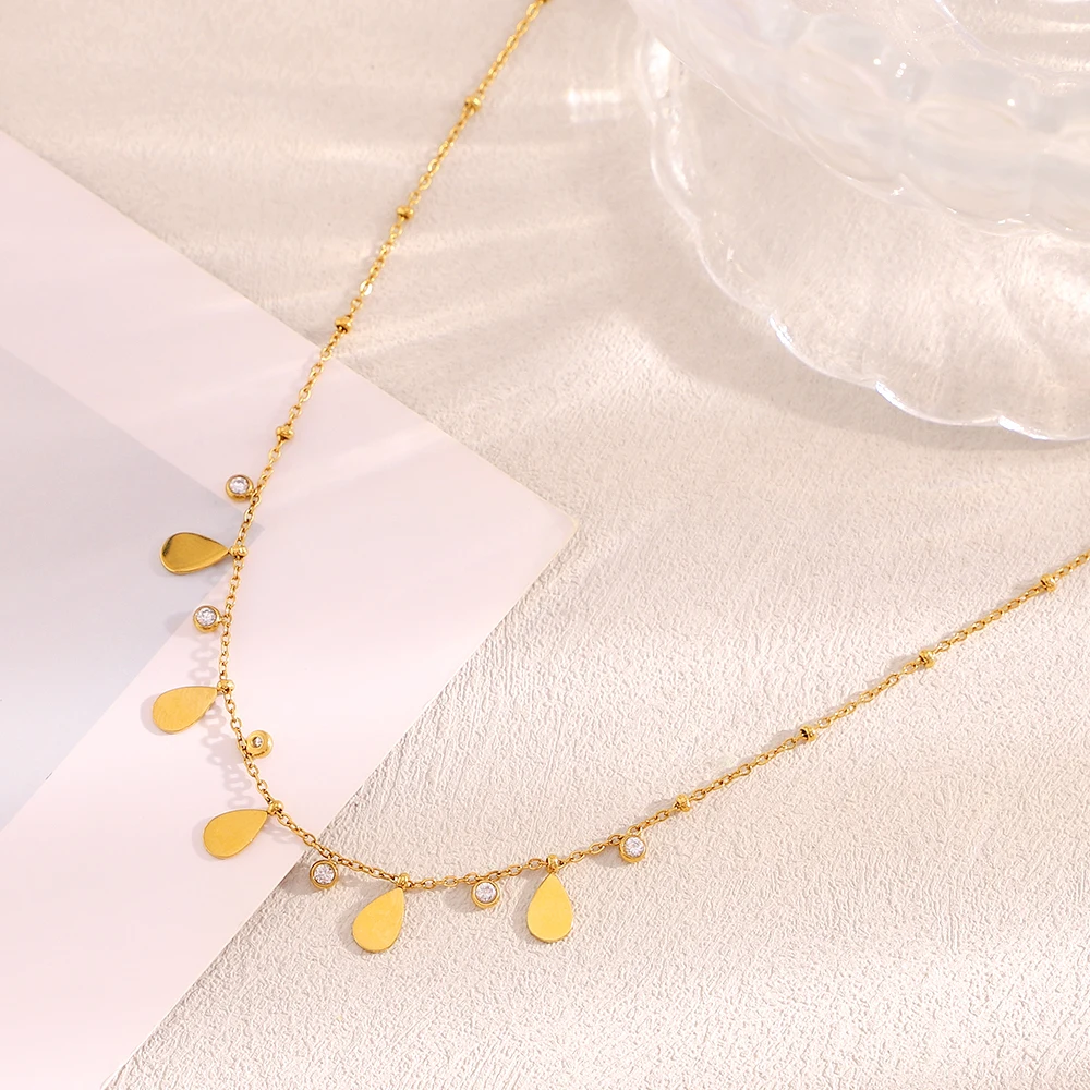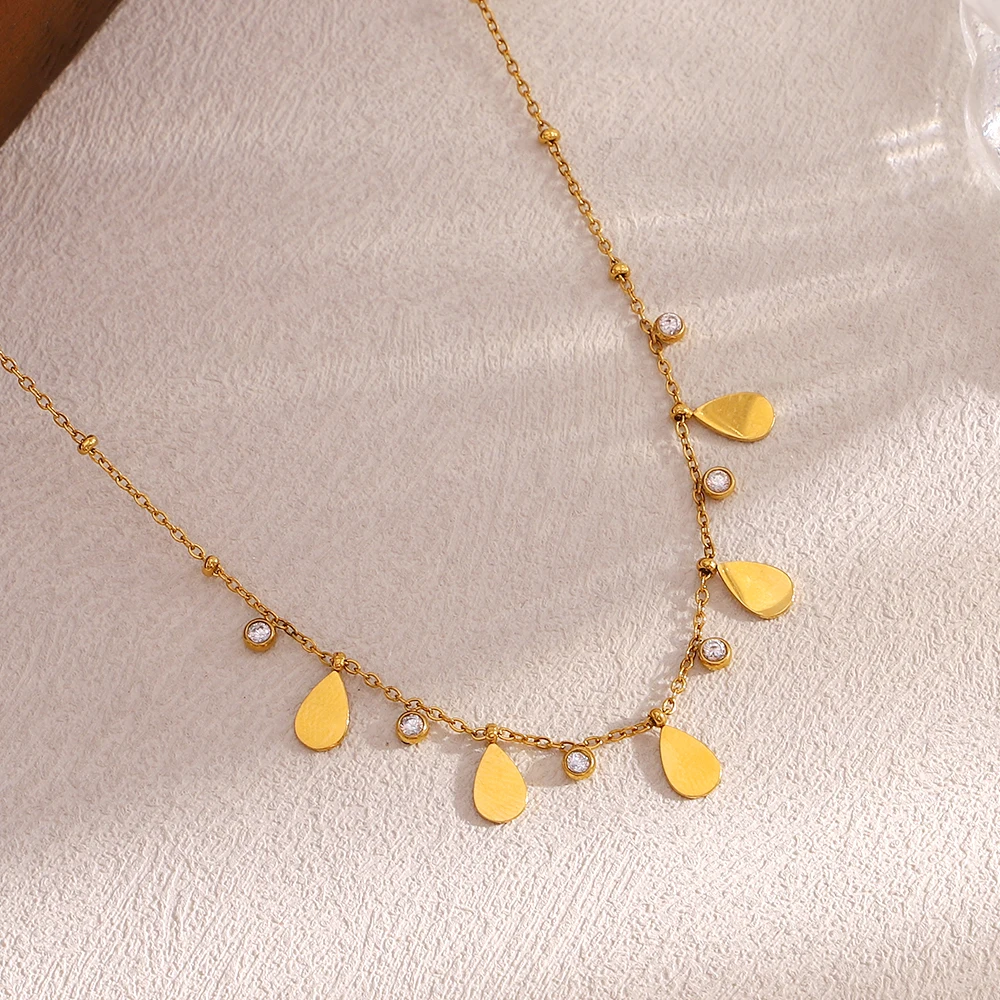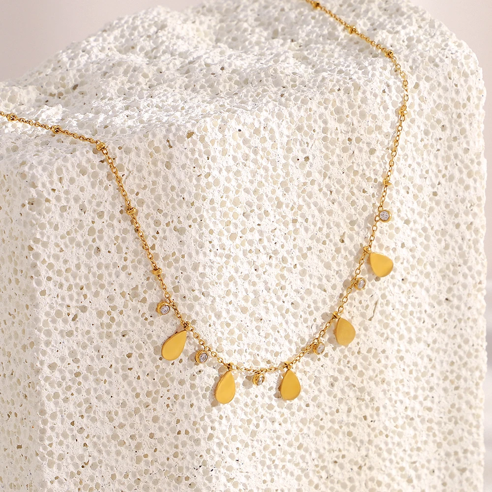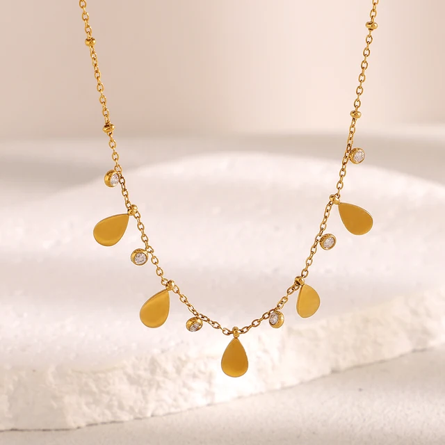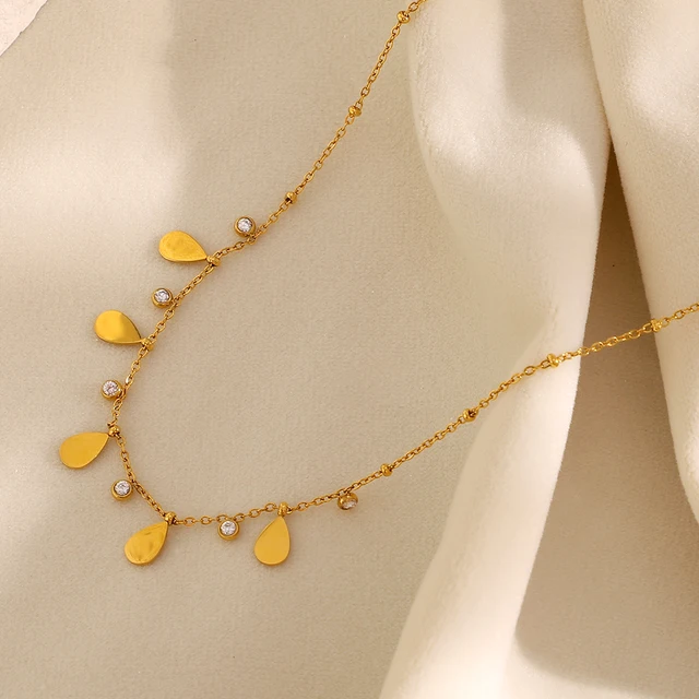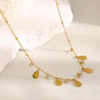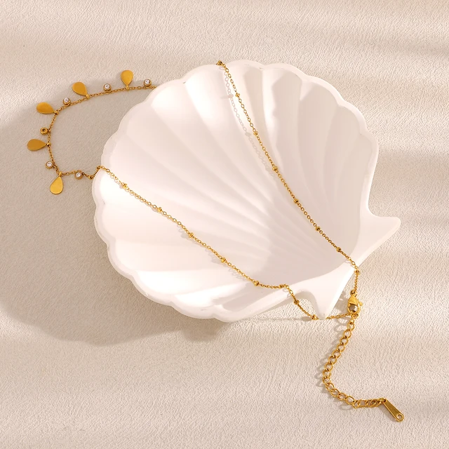 E.B.belle Stainless Steel Sexy Shell Zircon Paved V Shape Herringbone Chain Necklace Stainless Steel Waterproof Choker Necklace