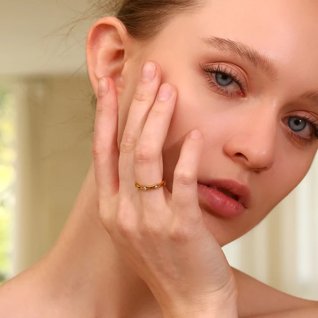 Be the first to review “E.B.belle Rhinestone Eight Awn Star Wave Shape Ring Stainless Steel 18k Gold Plated Exquisite Women”