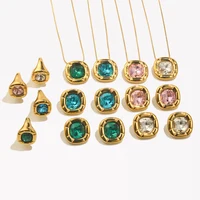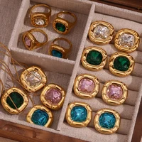 E.B.belle Round Square Flower Zircon Earrings Necklace Ring Tarnish Free Stainless Steel Women's Ring 18K Gold Plated Jewelry