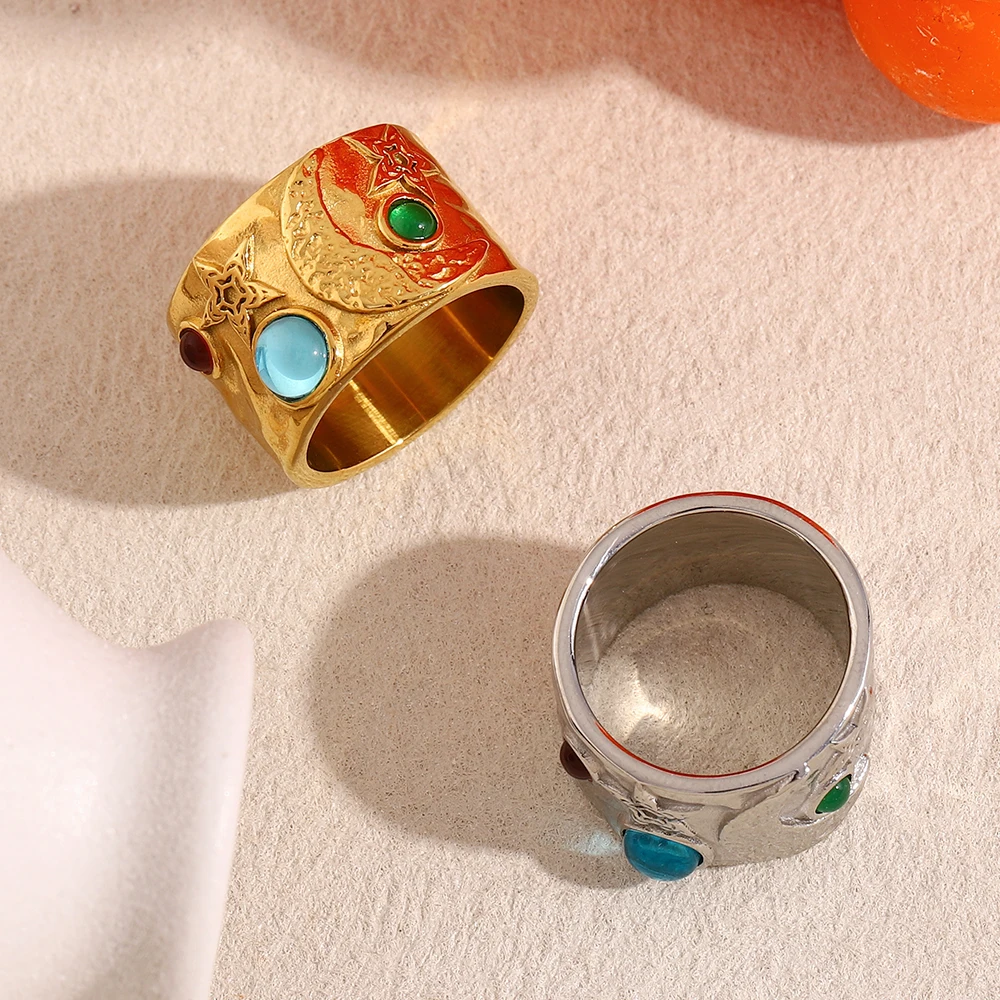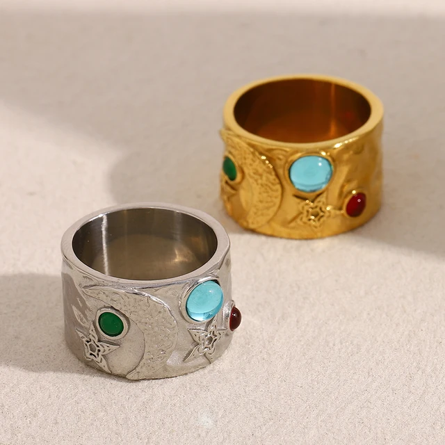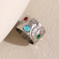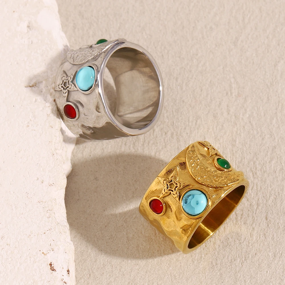 QianBei Wholesale 10Pcs/set Oval Shape Blue/Green Stone Rings Turquoises Ring Wedding Engagement Jewelry Rings For Women Men