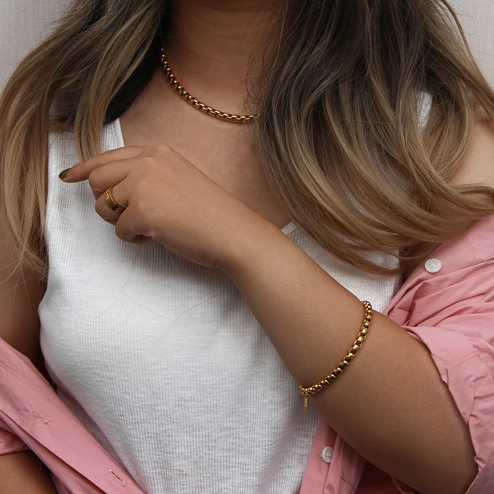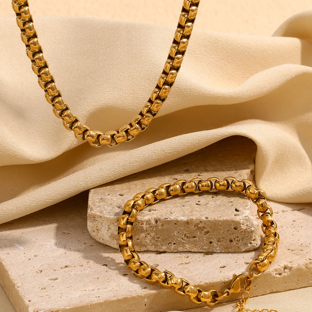 E.B.belle Stainless Steel 18K Gold Plated Bold Chunky Tarnish Free Snake Chain Necklace Bracelets Jewelry Set
