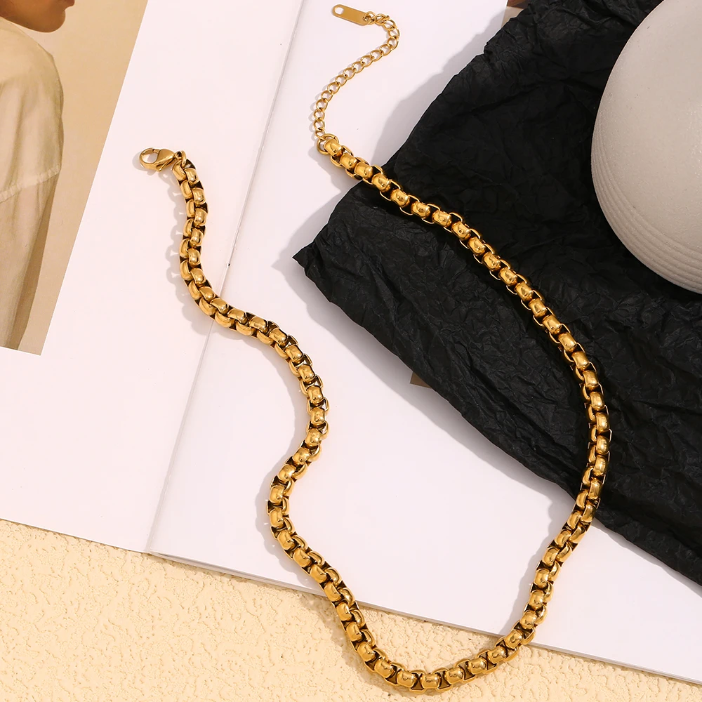 E.B.belle Stainless Steel 18K Gold Plated Bold Chunky Tarnish Free Snake Chain Necklace Bracelets Jewelry