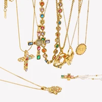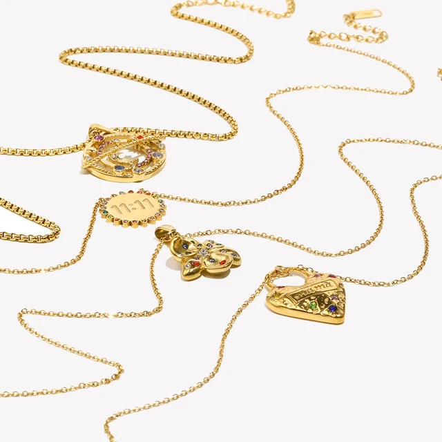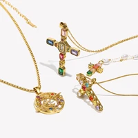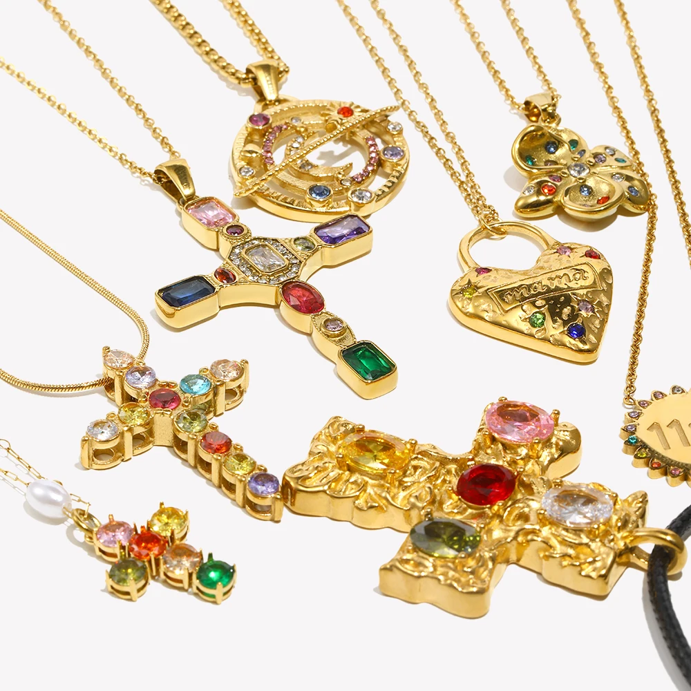 E.B.belle Stainless Steel Colorful Rhinestone Pendant Charms Necklace 18K Gold Plated Tarnish Free Women’s