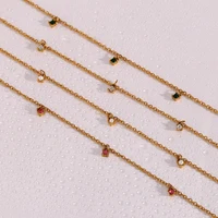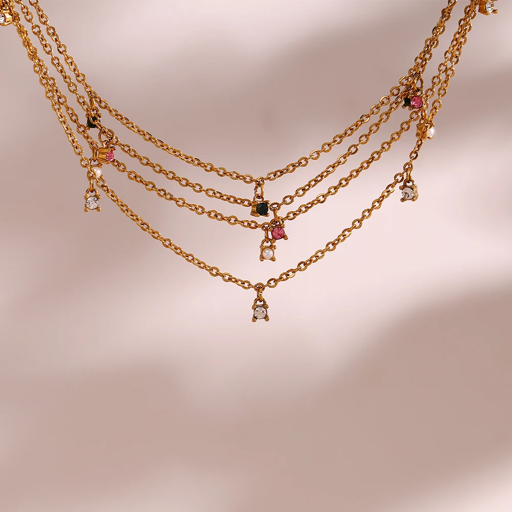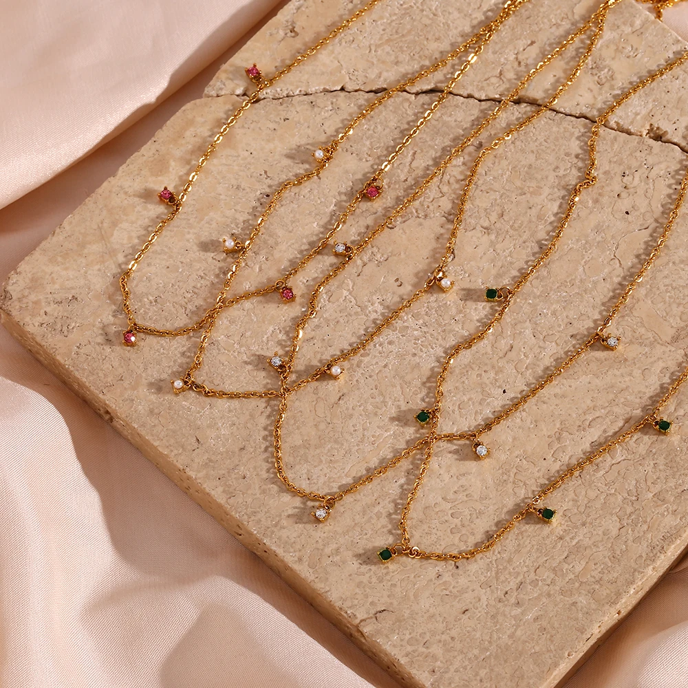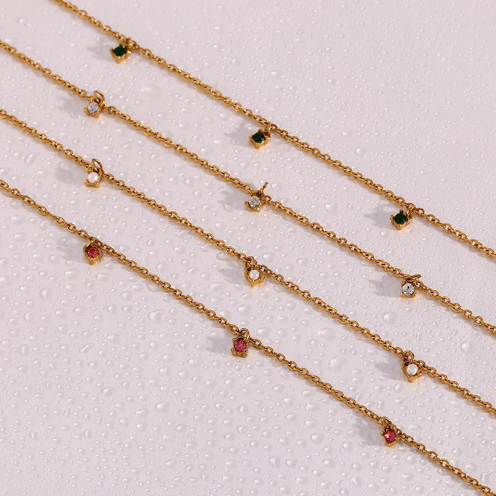 E.B.belle Multicolor Luxury Round Zircon Necklace Bracelet PVD Plated Stainless Steel Classic Style Party Shiny Chic Jewelry
