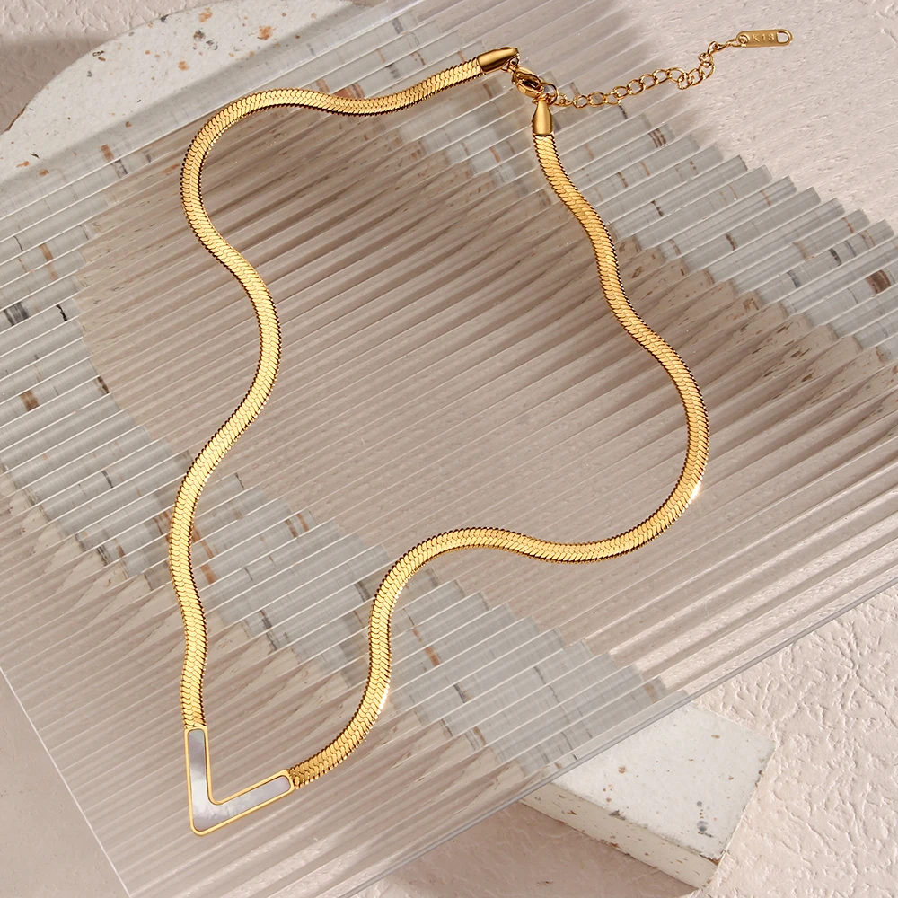 E.B.belle Stainless Steel Waterproof Herryingbone Chain Necklaces For Women Minimalist Gold Plated Blade Chain Bracelet Anklets