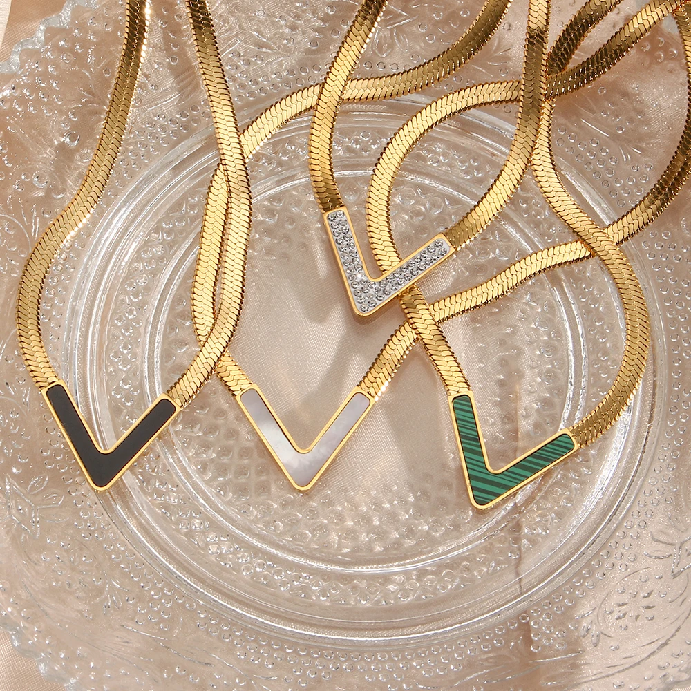 E.B.belle Stainless Steel Waterproof Herryingbone Chain Necklaces For Women Minimalist Gold Plated Blade Chain Bracelet Anklets