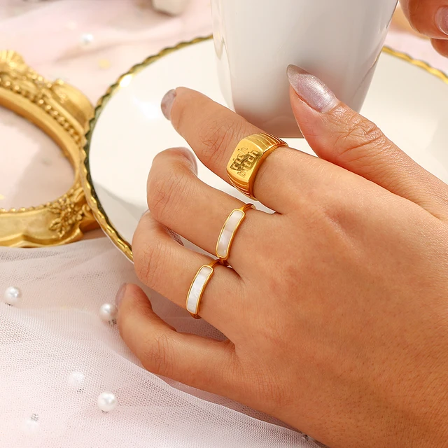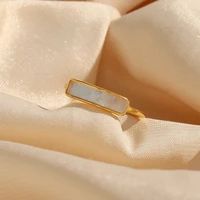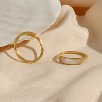 E.B.belle Stainless Steel Tarnish Free Jewelry Natural Shell Ring Thin Small Size White Rings For Woman Ladies Elegant Ring