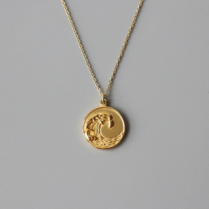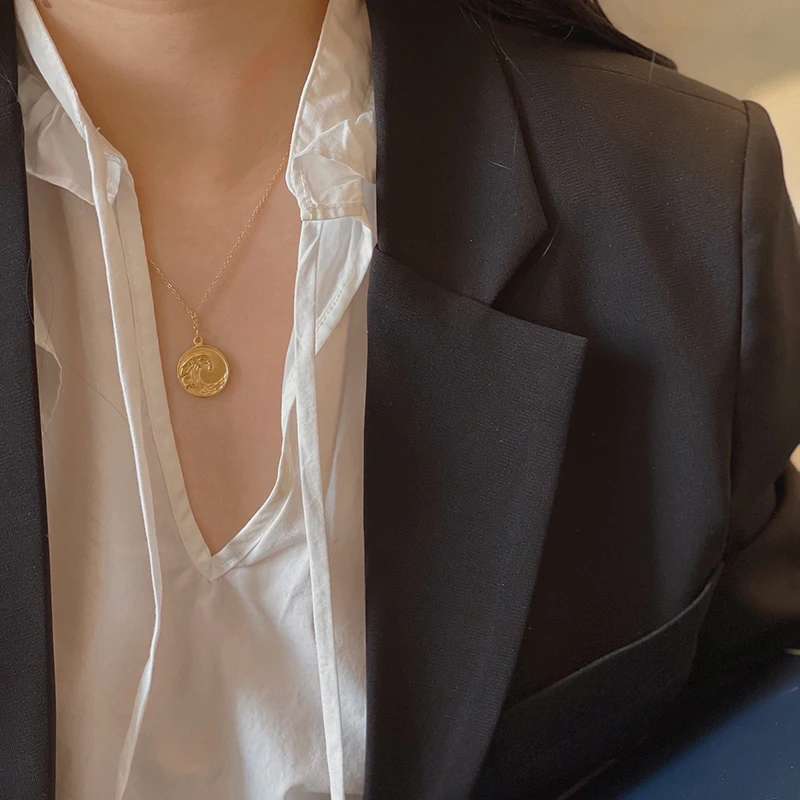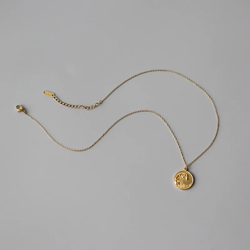 E.B.belle Tarnish Free Stainless Steel 18k Gold Plated Golden Sea Wave Necklace Stereoscopic Coin Necklaces