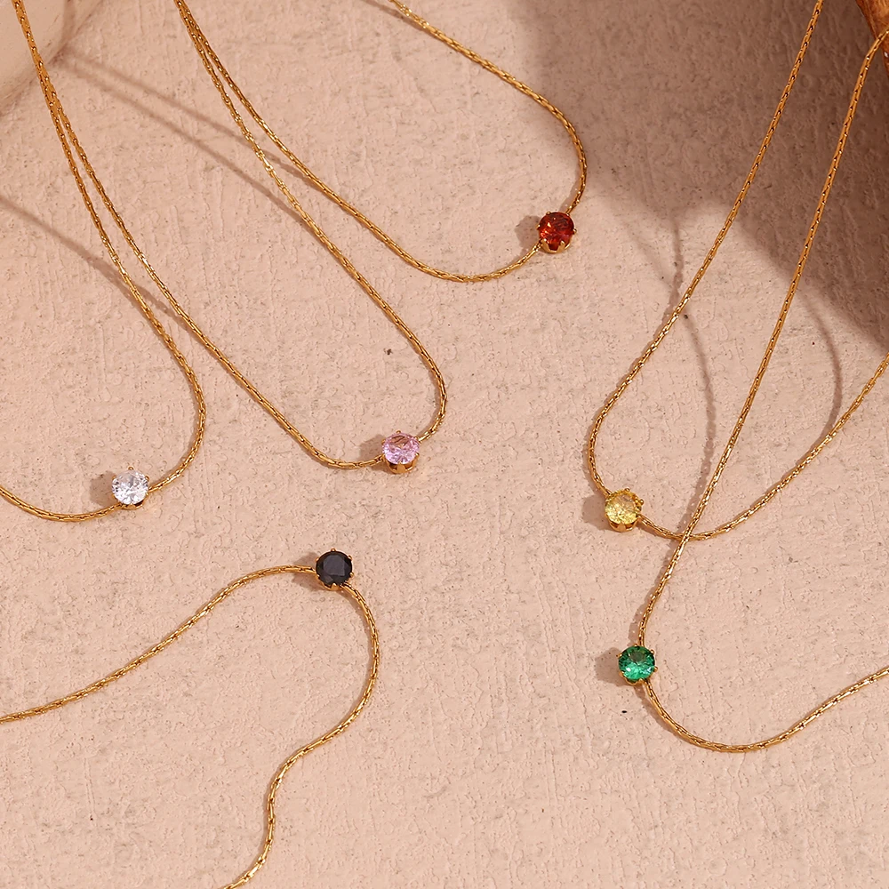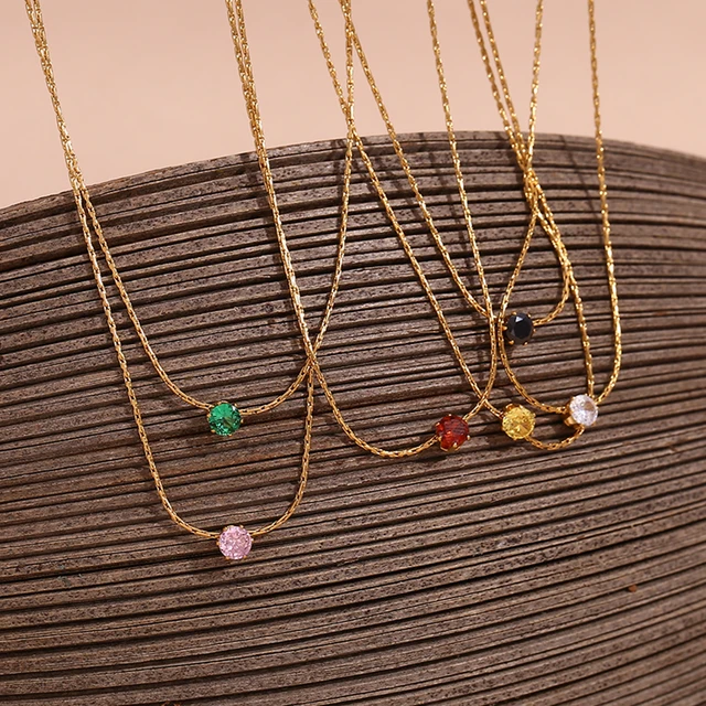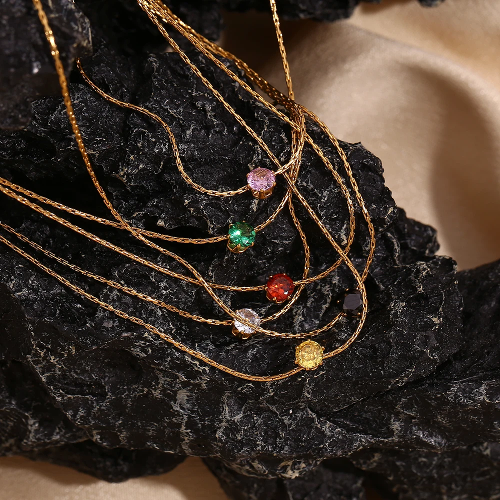 E.B.belle Latest Chain AAA Cubic Zirconia Herringbone Chain Choker Necklace Stainless Steel Gold Plated Necklaces For Women