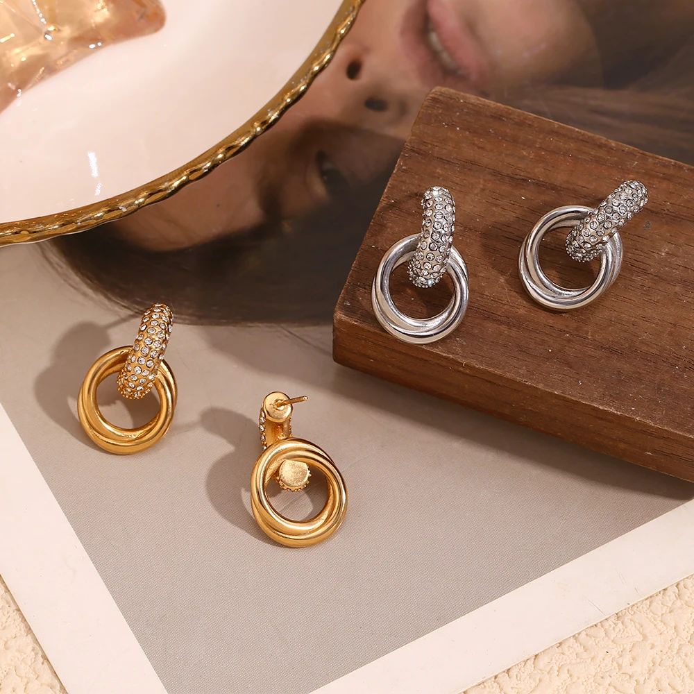 E.B.belle New Basic Round Half Green Stone Necklace PVD Plating Stainless Steel Fashionable Party Women Stacked Jewelry