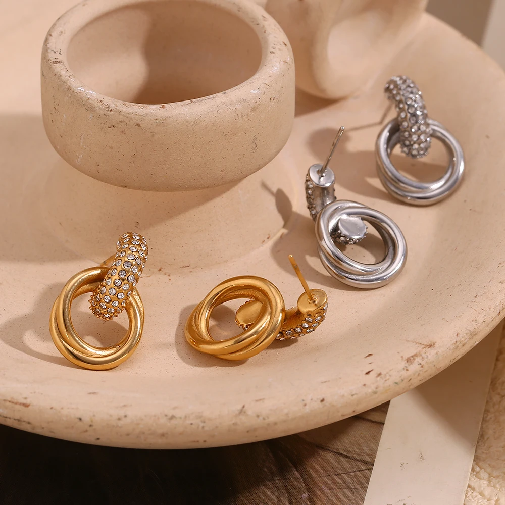 E.B.belle Stainless Steel Beading Ring Gold Plated Tarnish Free Minimalist Pattern Hypoallergenic Waterproof Women's Jewelry