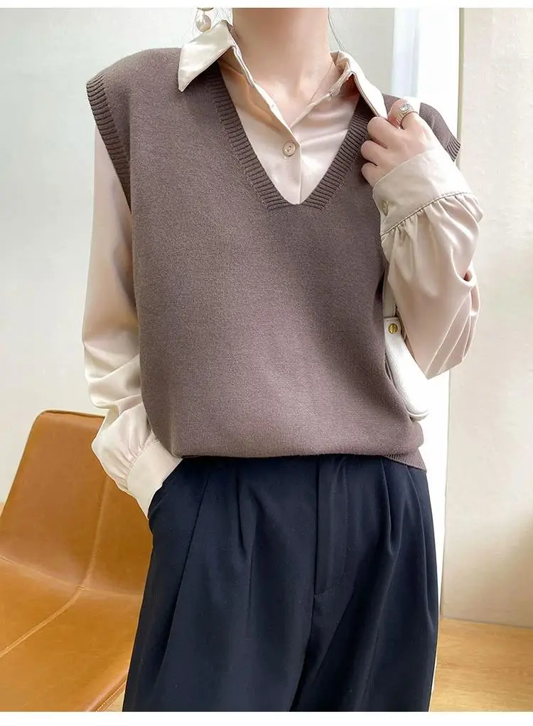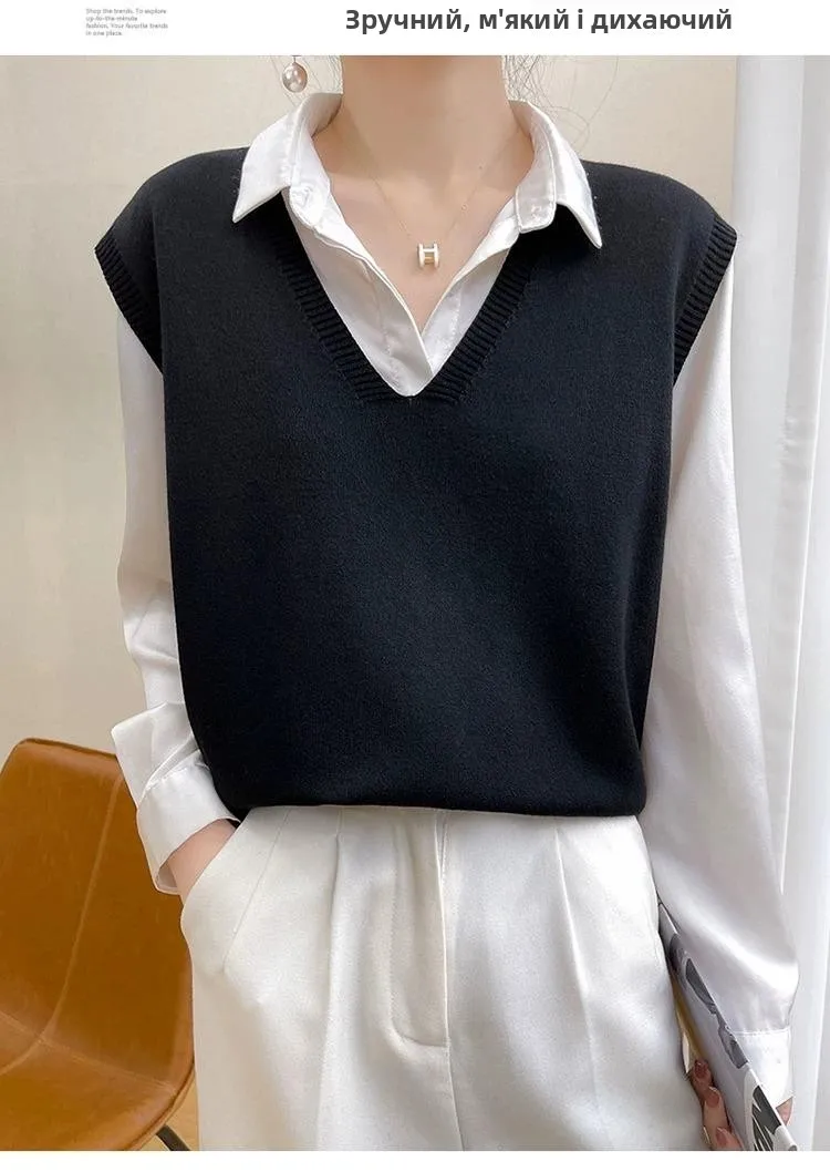 This loose-fit wool vest offers comfort and freedom of movement, making it ideal for everyday wear.