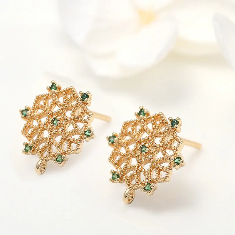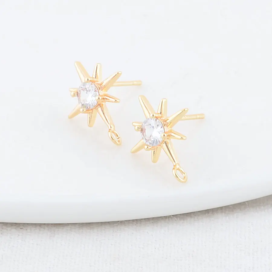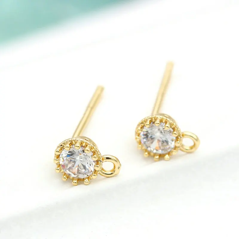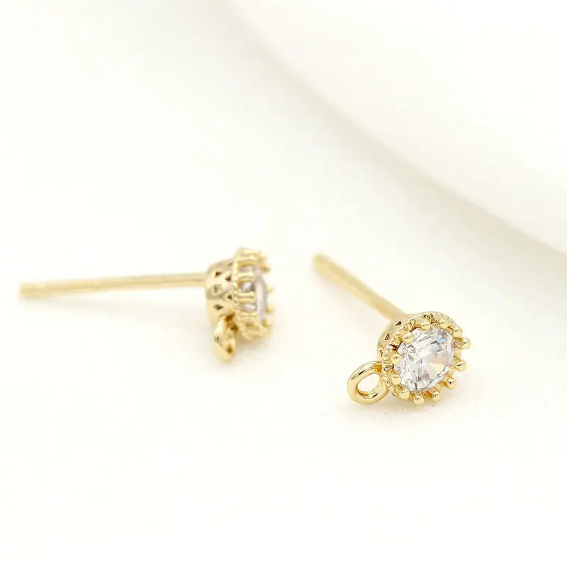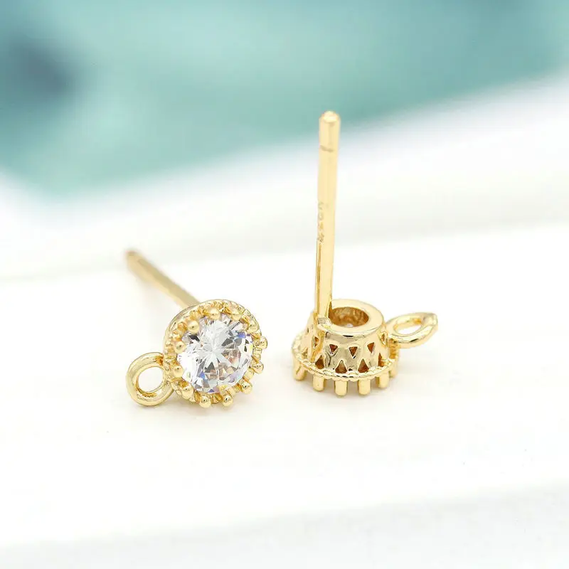 | Product Features | 14K Gold Color Plated Zircon Round Post Earrings Findings |