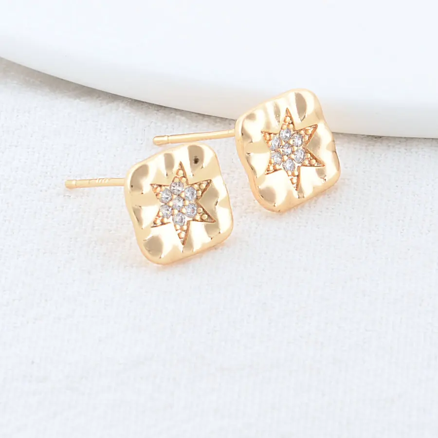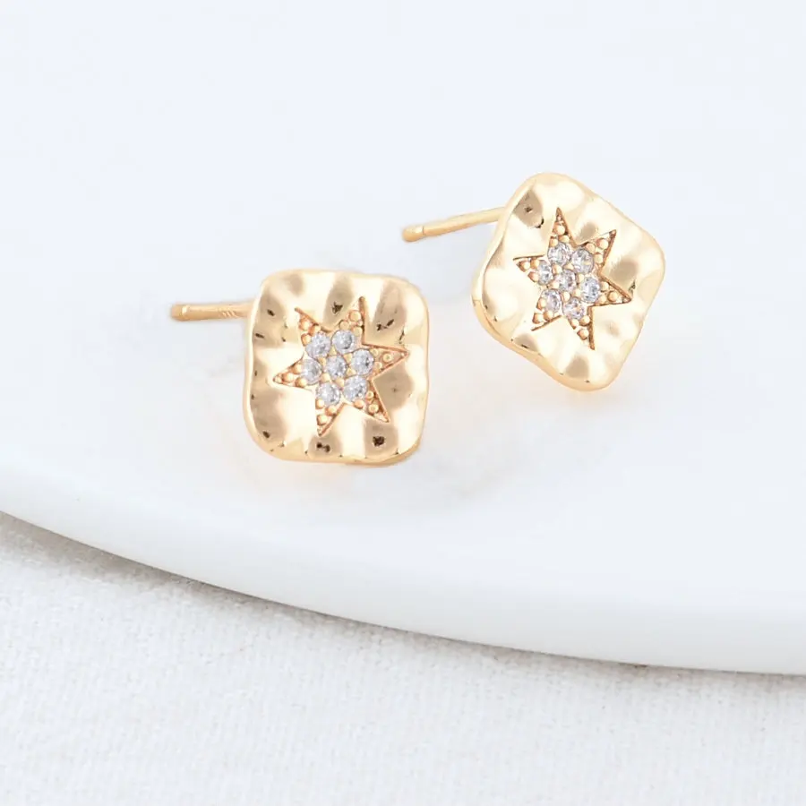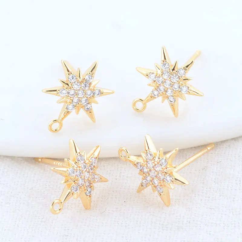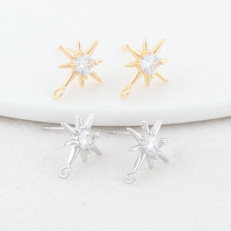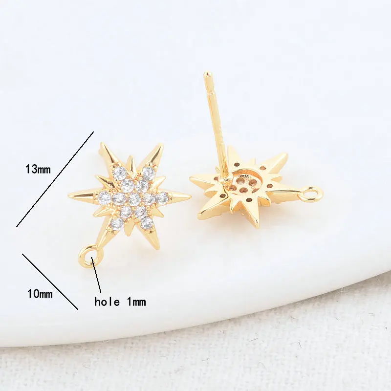 | Product Features | 14K Gold Color Plated Zircon Round Post Earrings Findings |