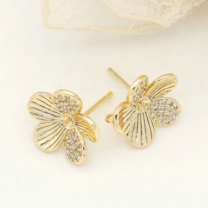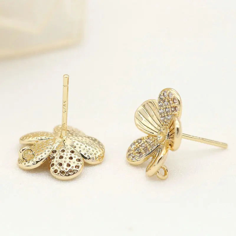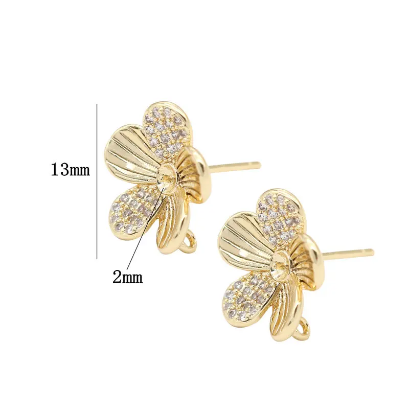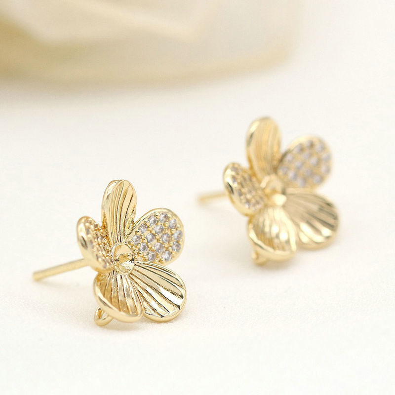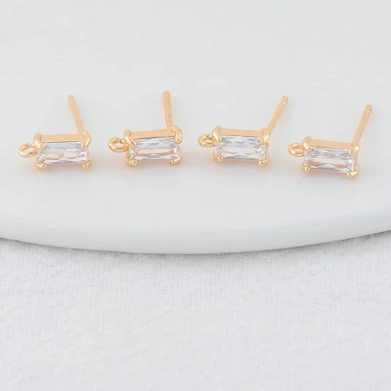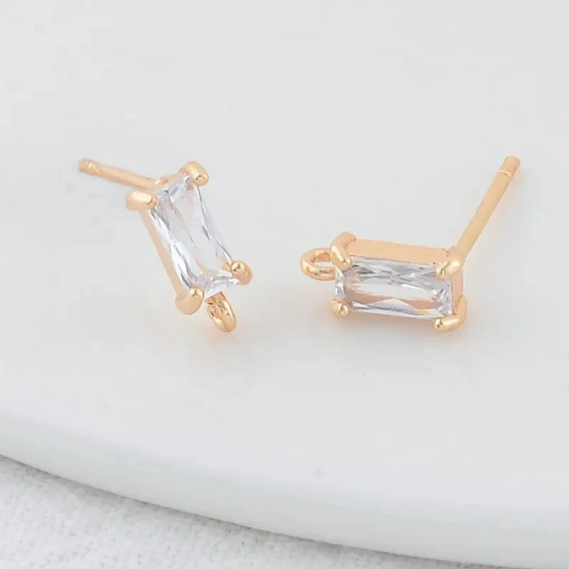 18K Gold Plated Brass Metal Earwires Basic Fasteners,Earring Fixtures,Inlaid Zircon Earring Hooks,Earring Making Supplies