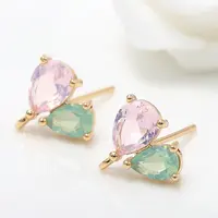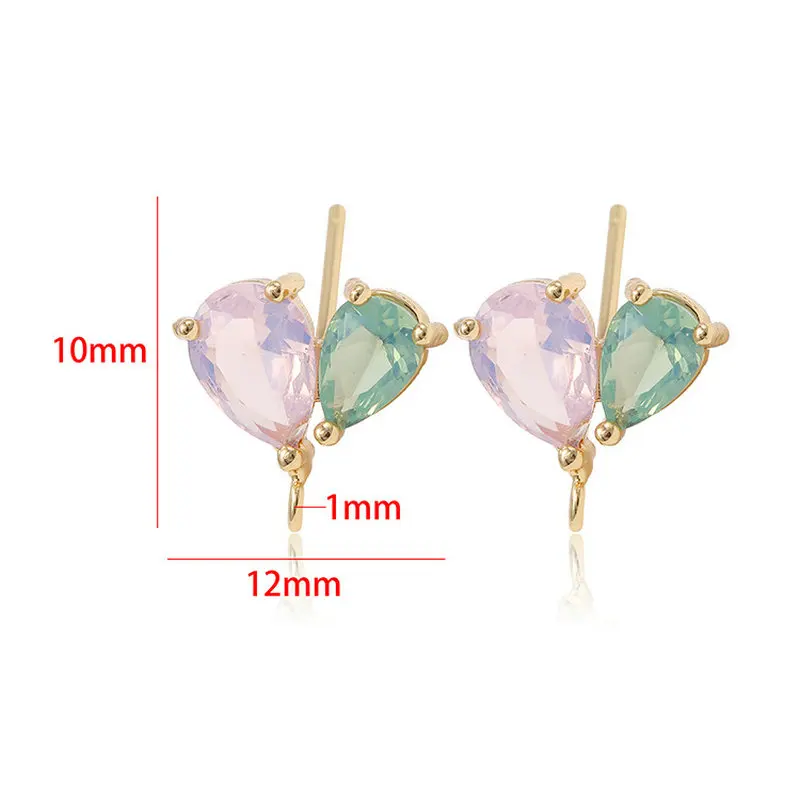 2Pair 18K Gold Plated Brass with Colorful Zircon Stud Earrings Hooks for DIY Earrings Jewelry Making Accessories