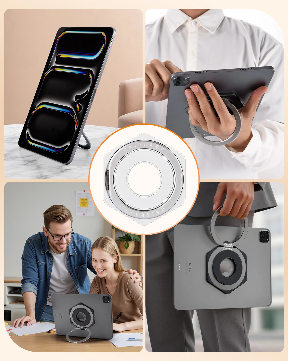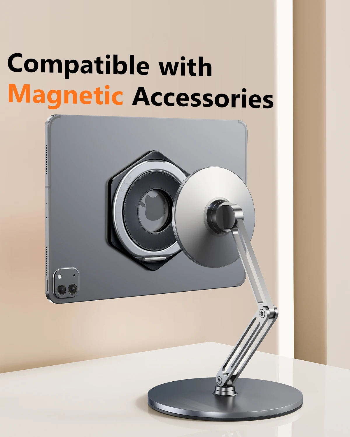 Eary Aluminum Magnetic Tablet Holder with 360°Rotation Ring Kickstand Portable Metal Tablet Stand Universal