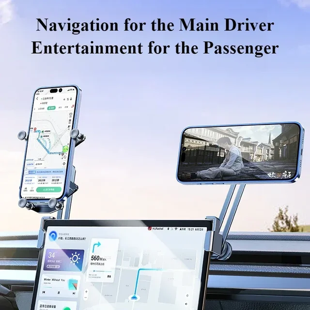 Eary Dual-position Car Screen Phone Holder Metal Bracket 360° Adjustable Stand Fit for Tesla Model 3 Y Highland Car Accessories