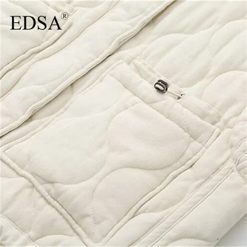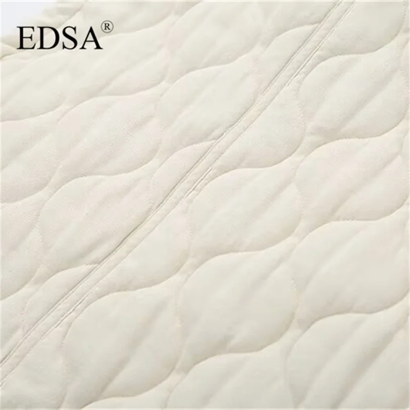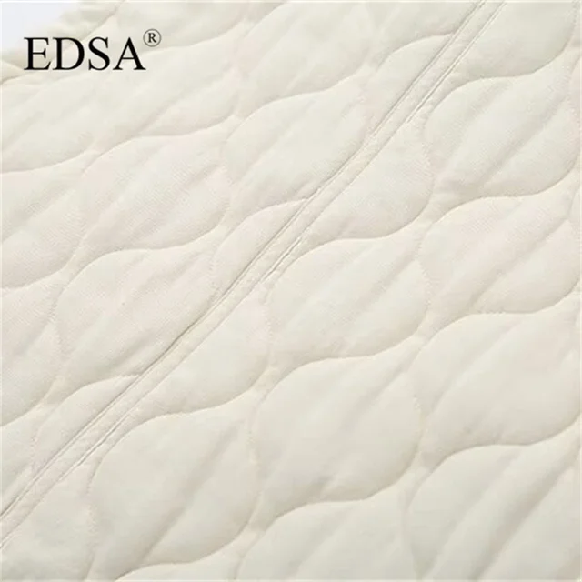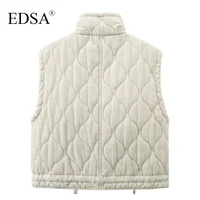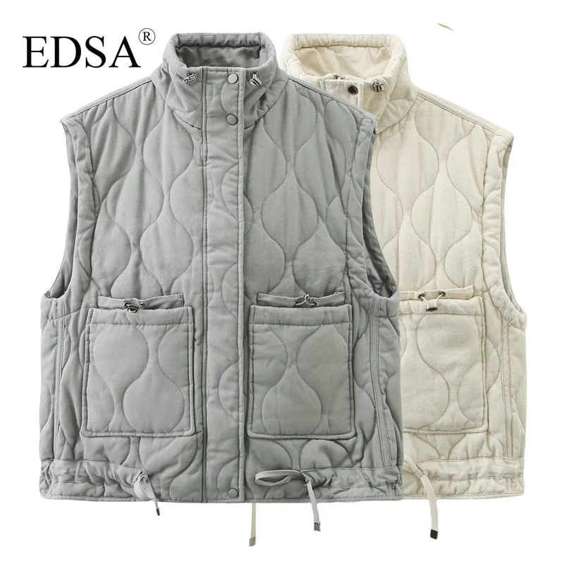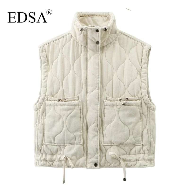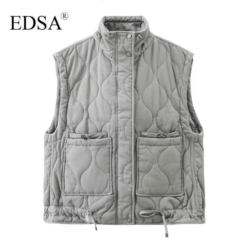 EDSA Women Pocket Cotton Jacket Vest Sleeveless Stand Neck Zipper Waistcoat Loose Female Streetwear
