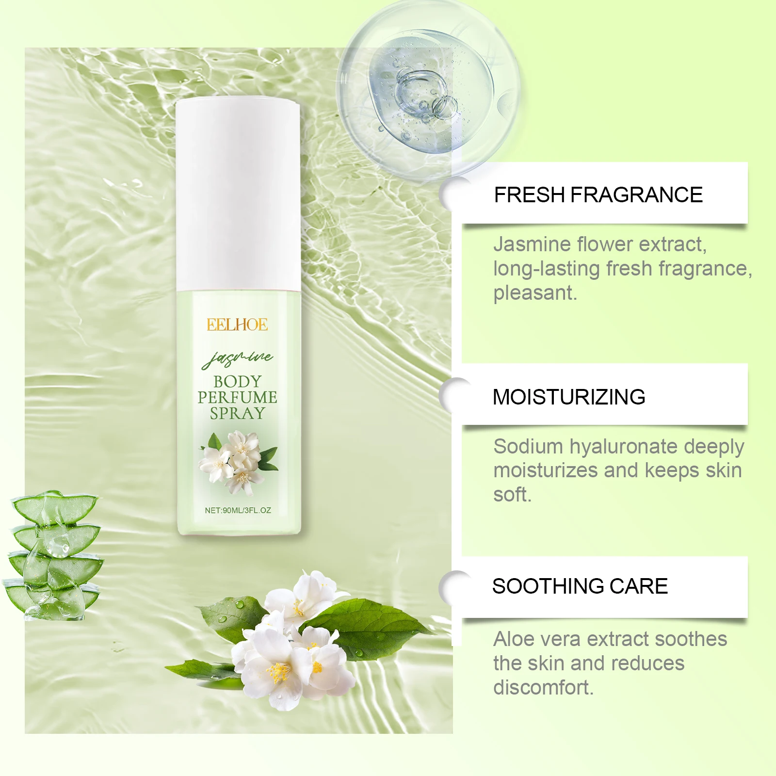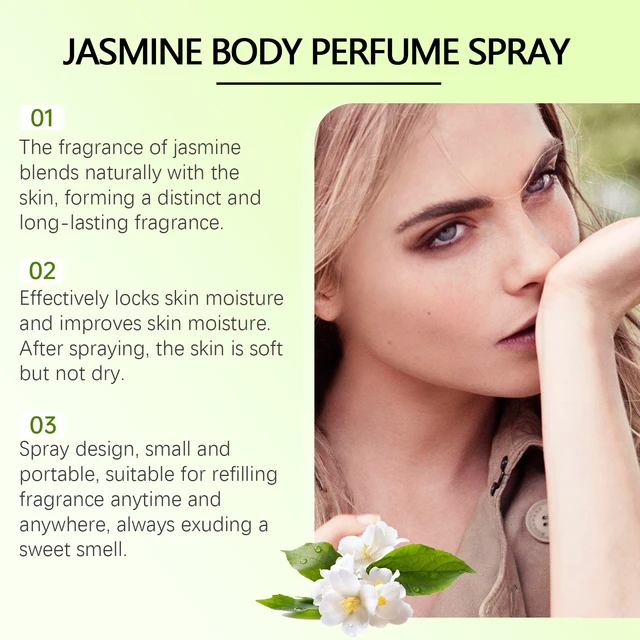 3. The jasmine body perfume spray is a true delight. It not only offers a captivating fragrance but also provides multiple benefits for the skin. This spray has the wonderful property of moisturizing and caring for the skin. It infuses the skin with essential moisture, leaving it feeling soft and supple.