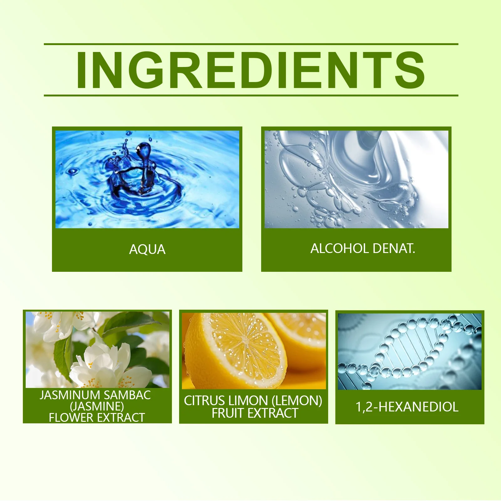 2. The fragrance of jasmine blends naturally with the skin, forming a distinct and long-lasting fragrance. It is effectively locks skin moisture and improves skin moisture. After spraying, the skin is soft but not dry.