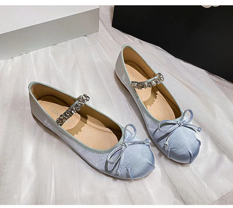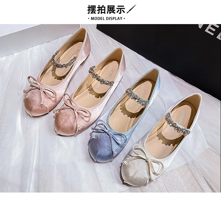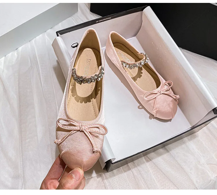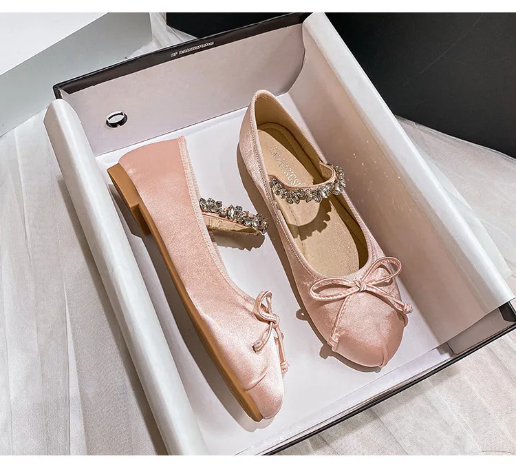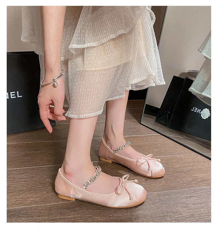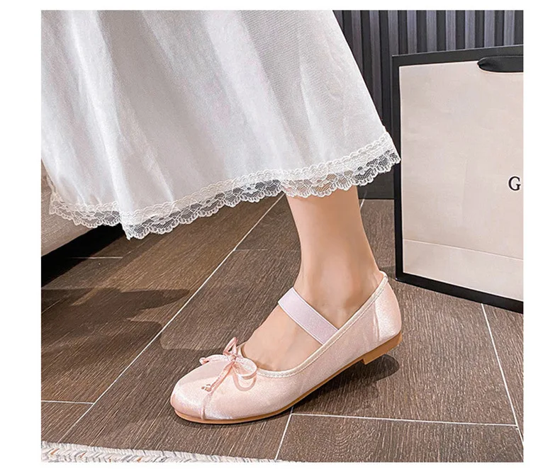 Be the first to review “Elastic Band Silk bowtie ballet flats women round toe pink bow loafers soft bottom mary janes female”