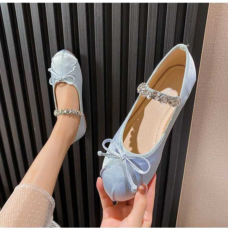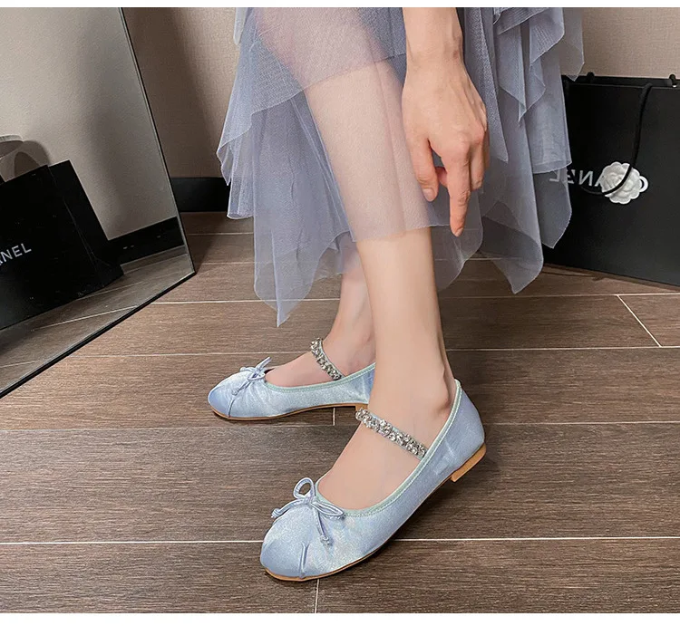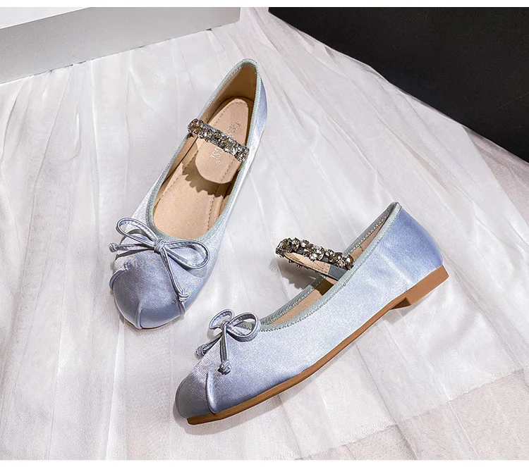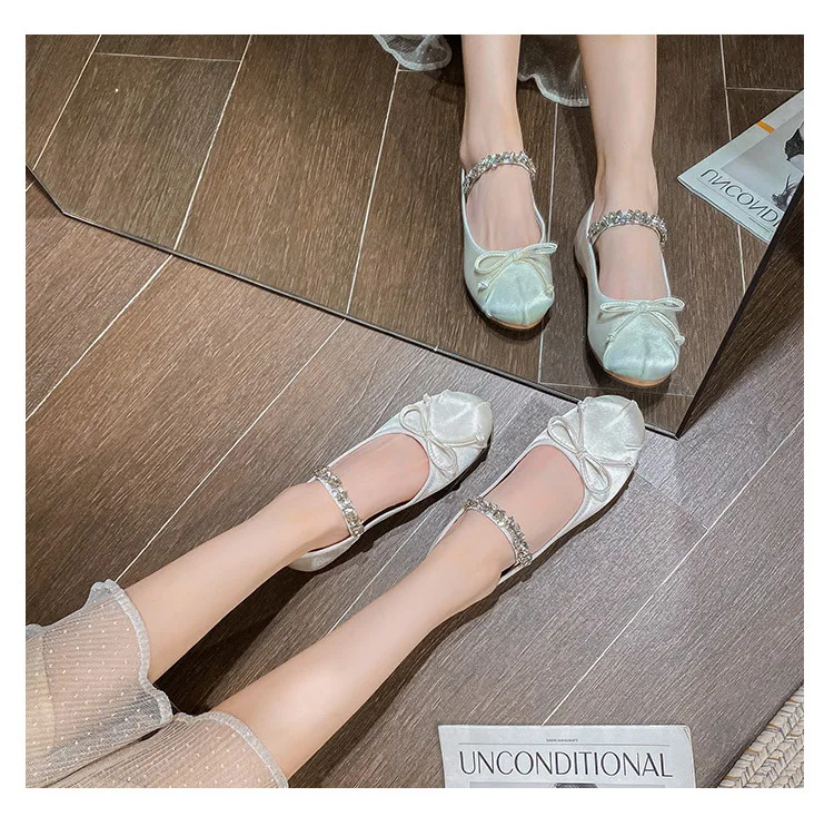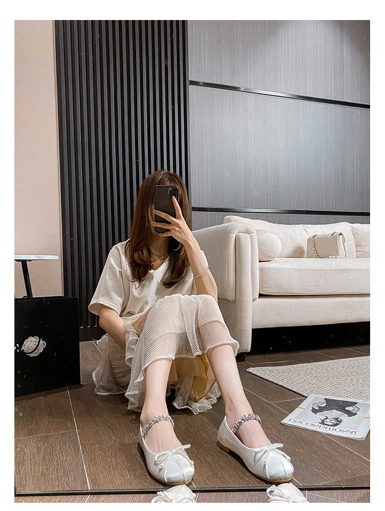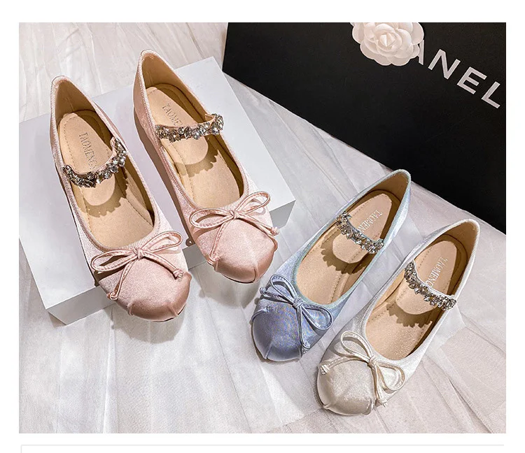 Be the first to review “Elastic Band Silk bowtie ballet flats women round toe pink bow loafers soft bottom mary janes female”