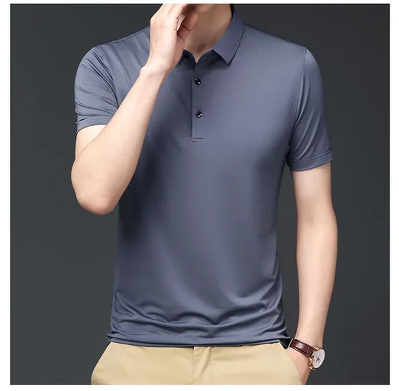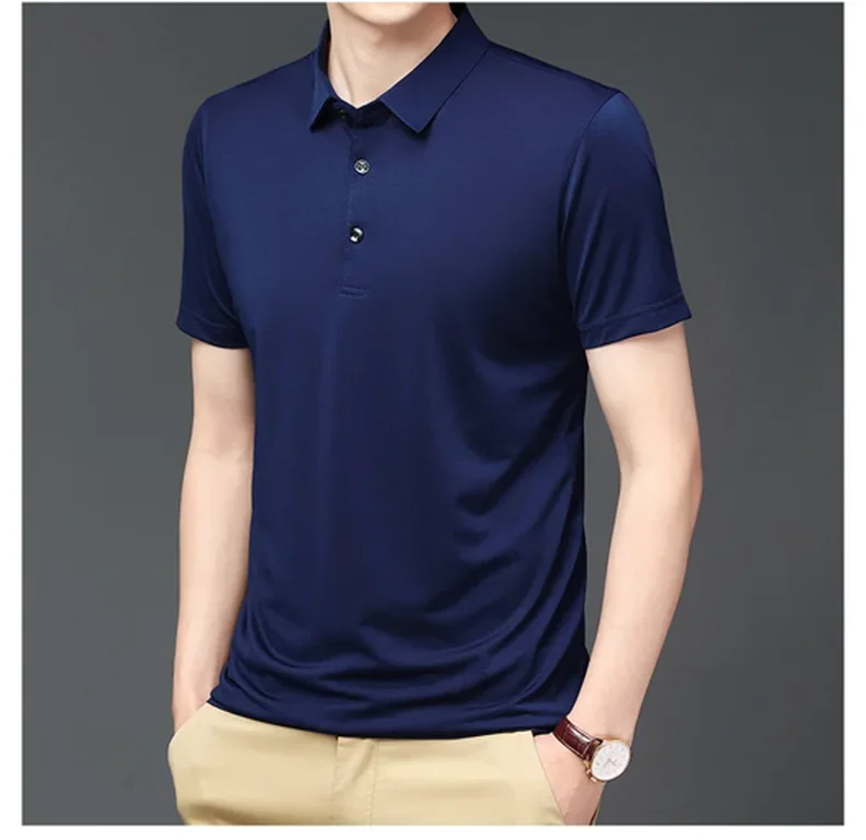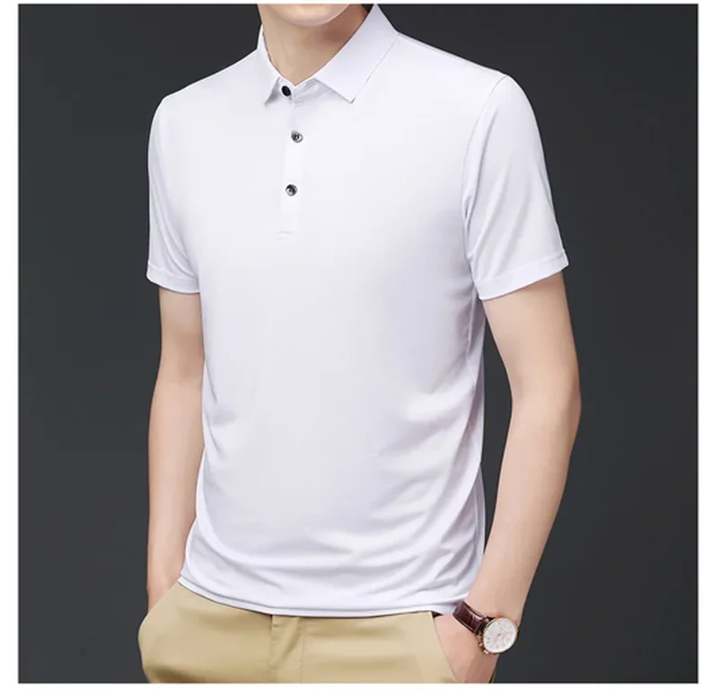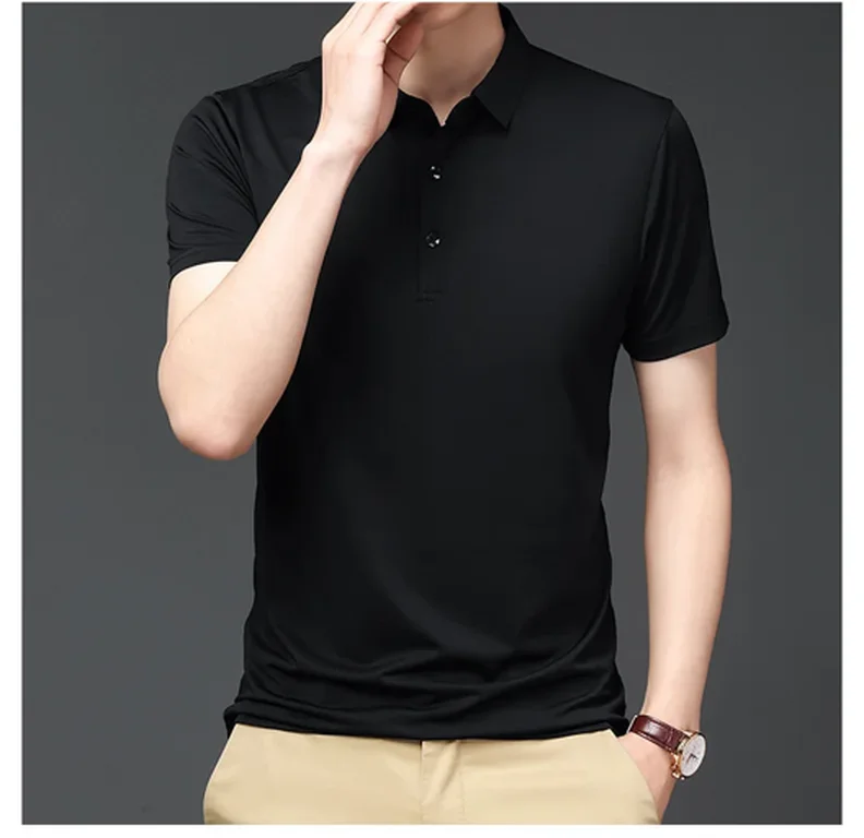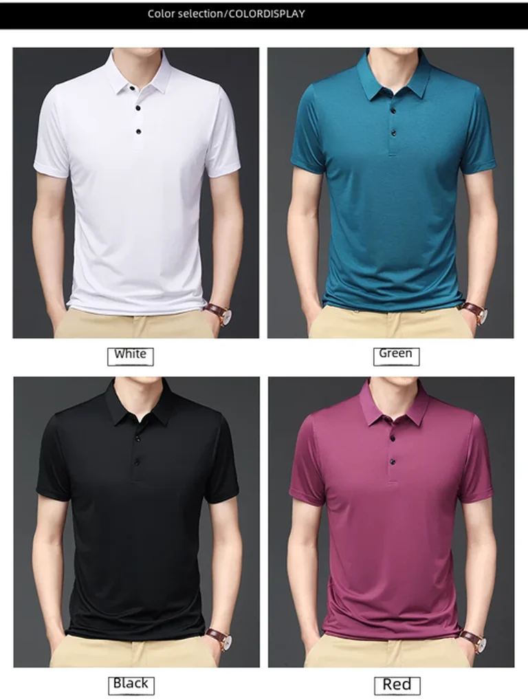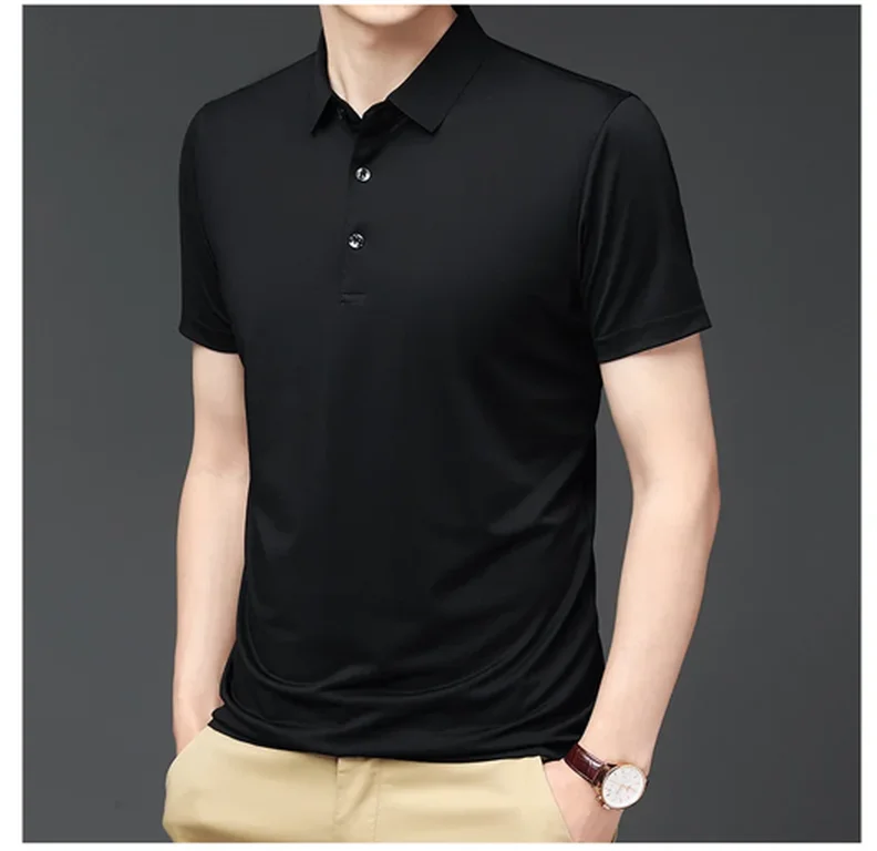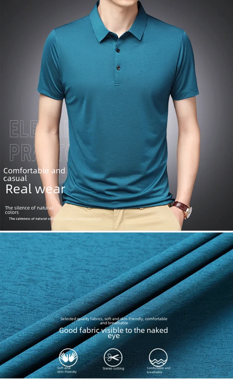 • Ice Silk Material :Crafted from premium Ice Silk material, this polo shirt offers a smooth and soft handfeel, providing ultimate comfort during summer.