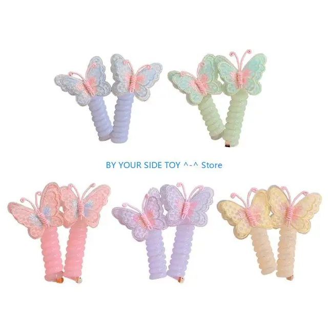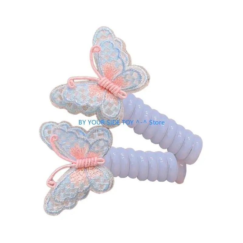 Elastic Spirals Hairtie for Little Girl Lovely Cord Hairring Butterfly Hair Ties U6XE