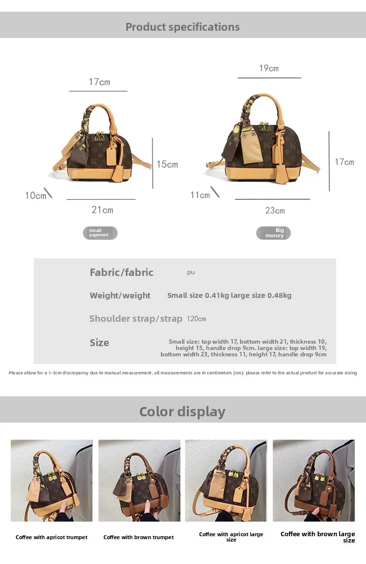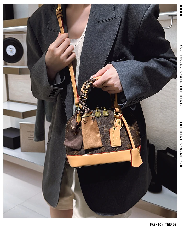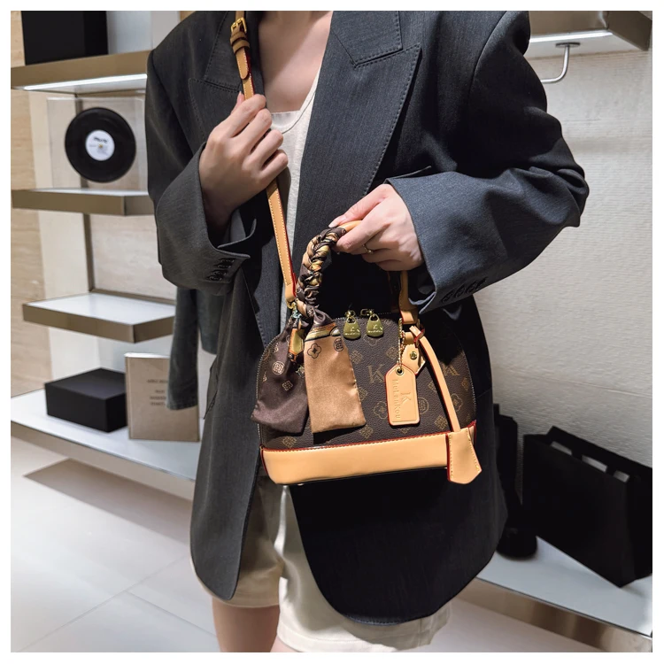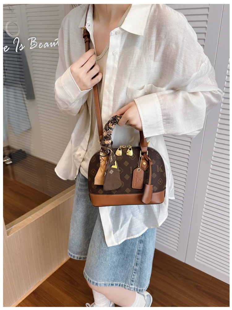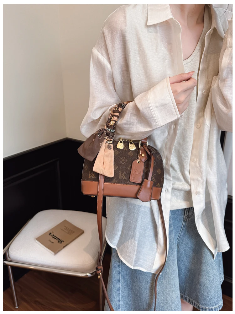 The bag features a chic shell shape, adding a touch of elegance and sophistication to any outfit.